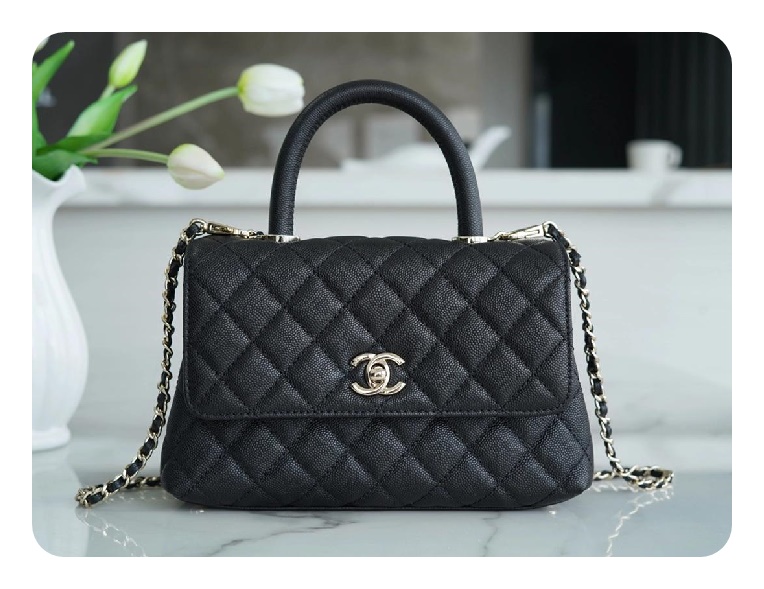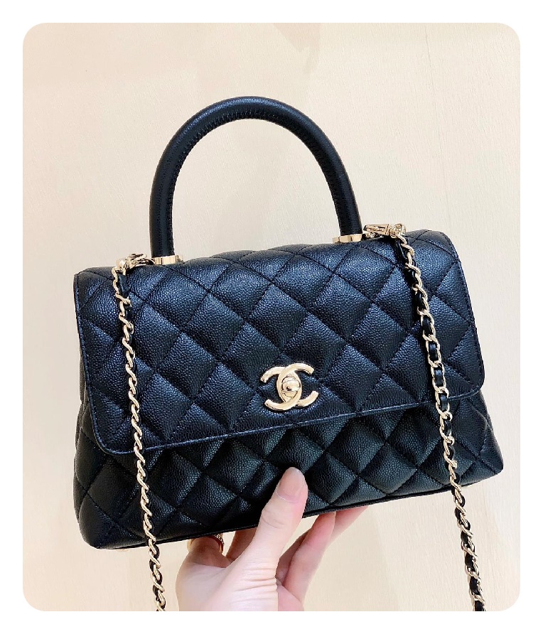 シャネルココハンドルスモールブラックゴールドh2696