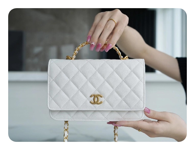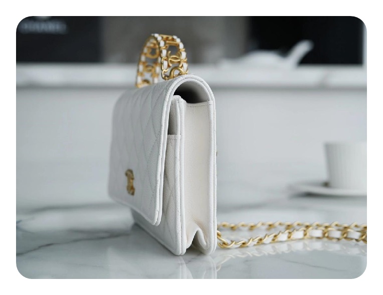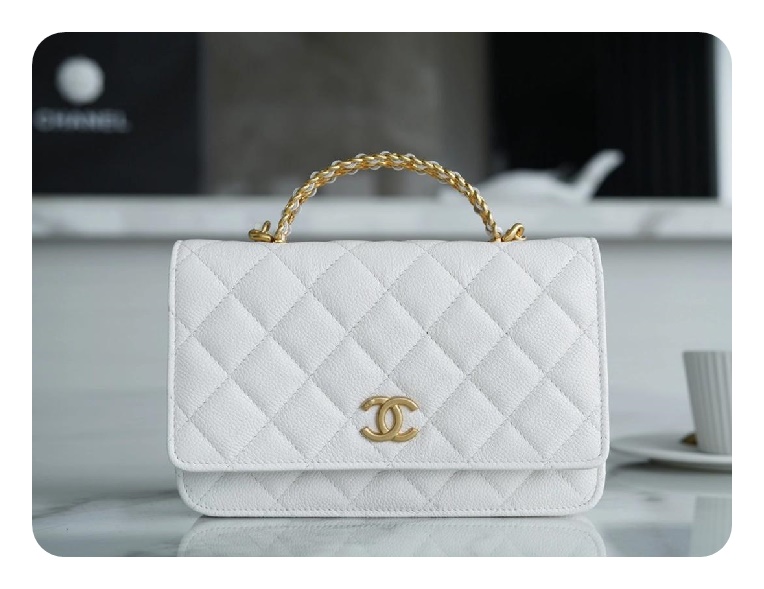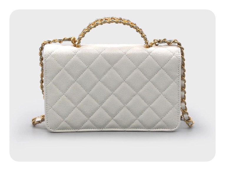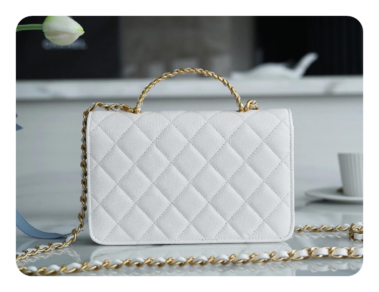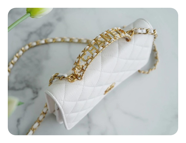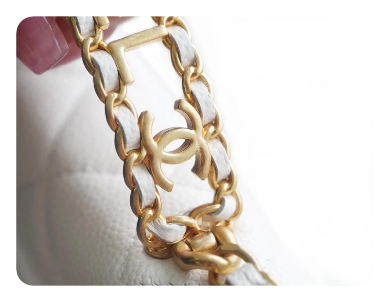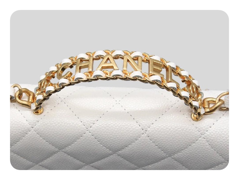 シャネルトップハンドルラムスキンホワイトゴールドh2710