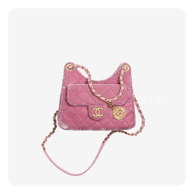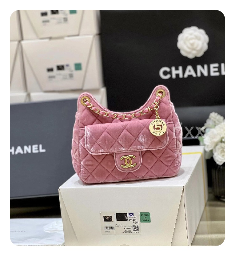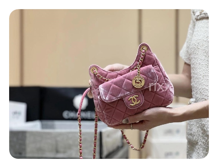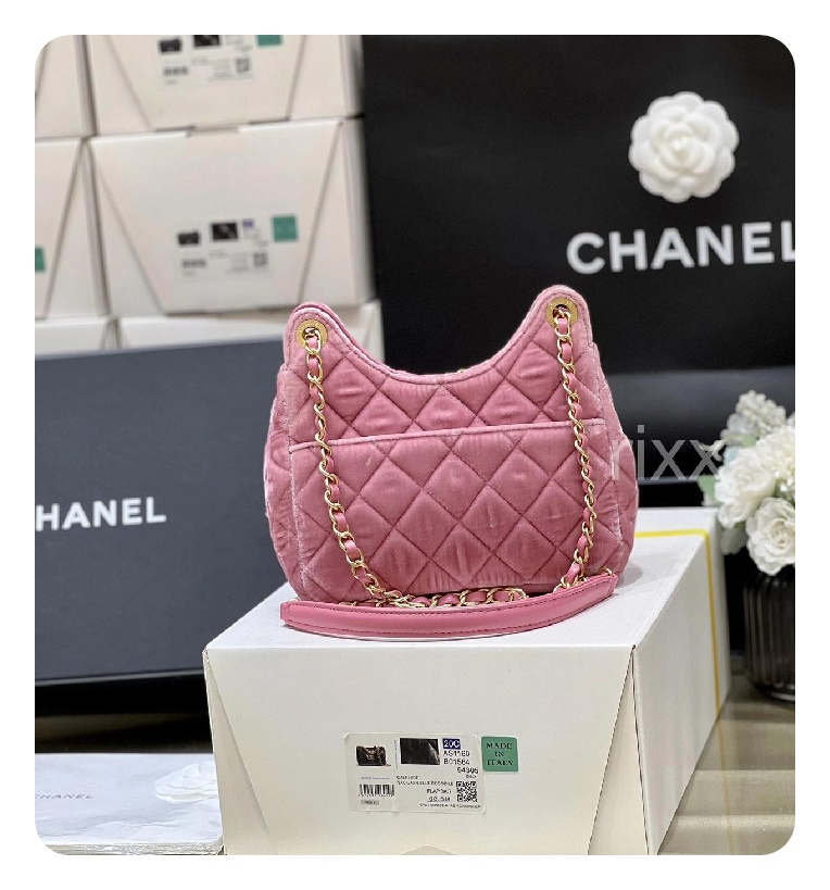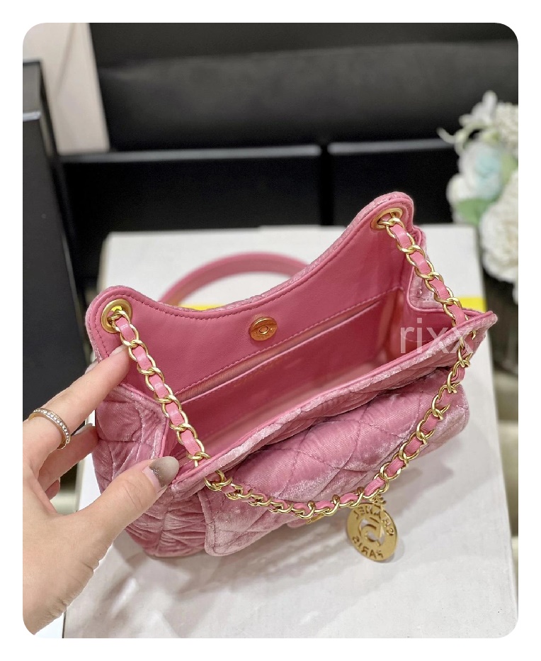 シャネル23スモールハボバッグベルベット&ゴールドメタルピンク23h2736