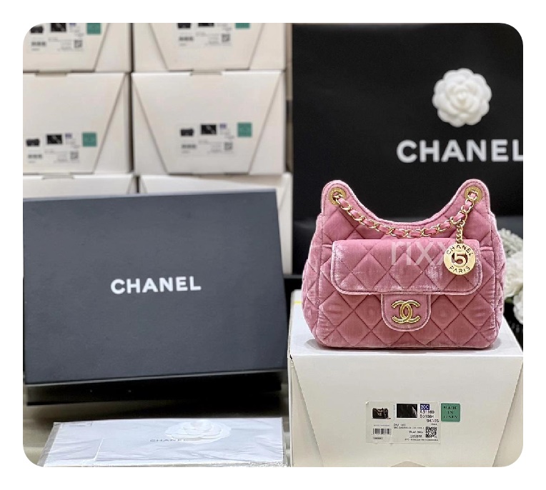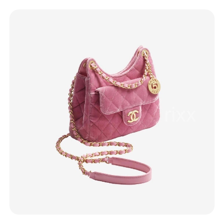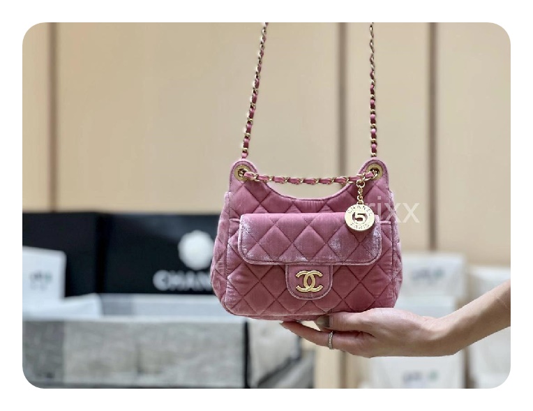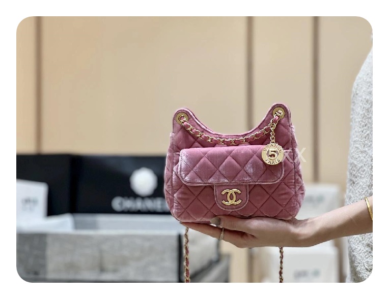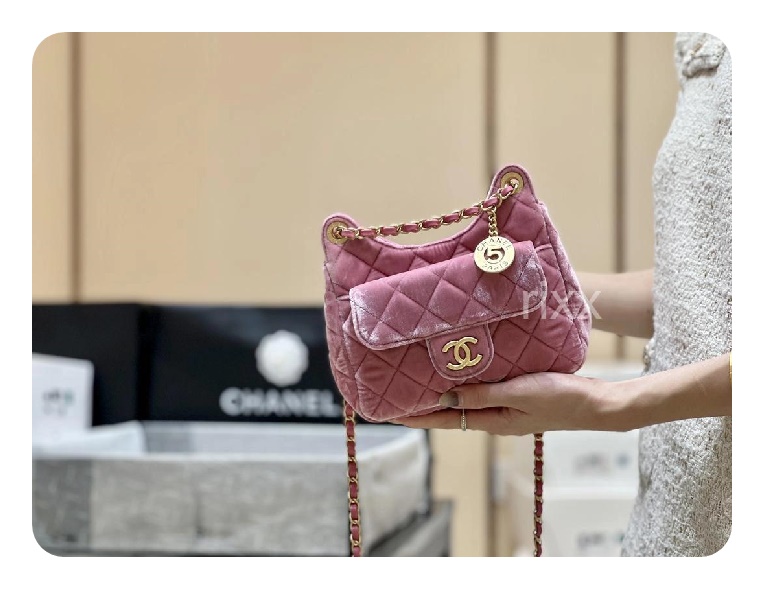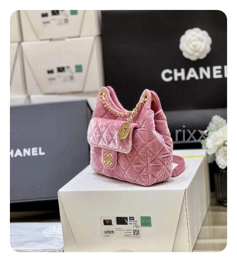 シャネル23スモールハボバッグベルベット&ゴールドメタルピンク23h2736