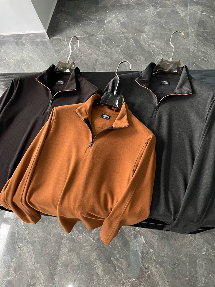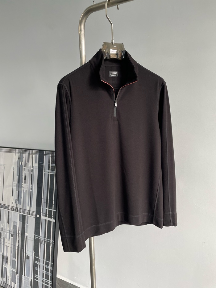 エルメネジルドゼニアメンズジップアップ長袖Tシャツ-c2487