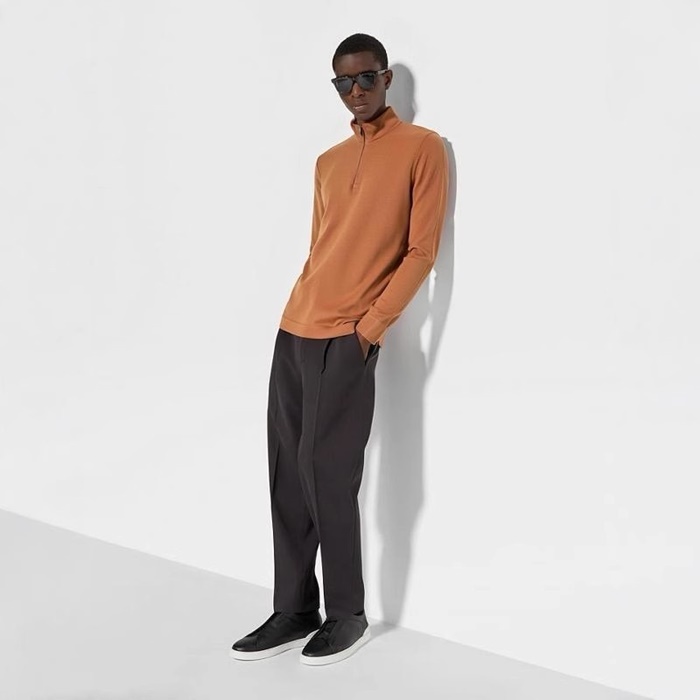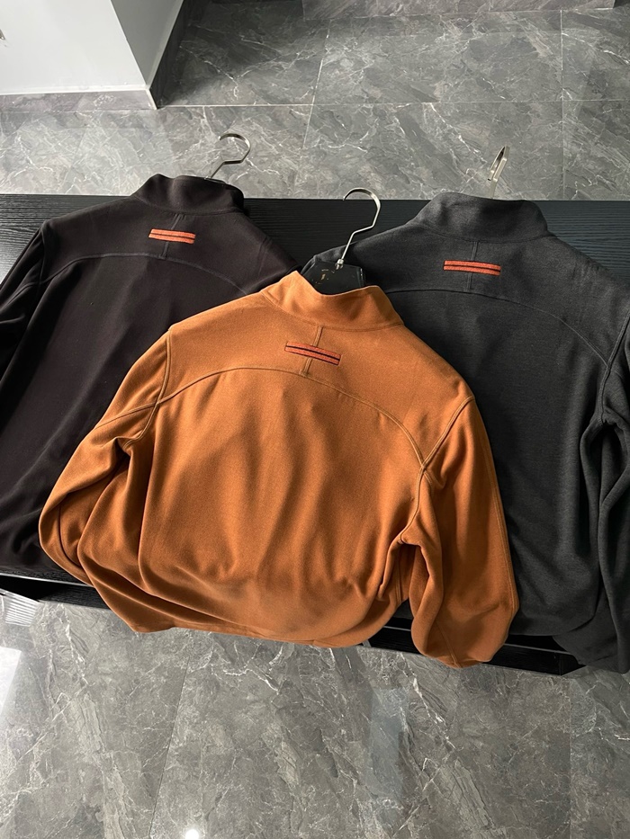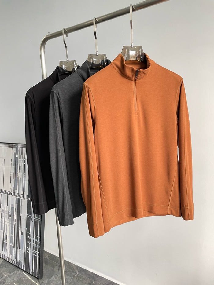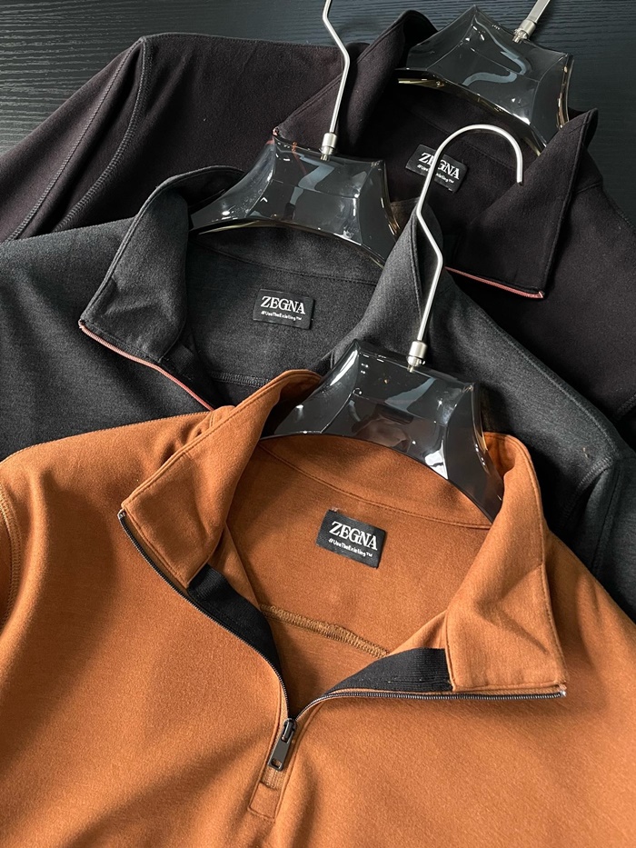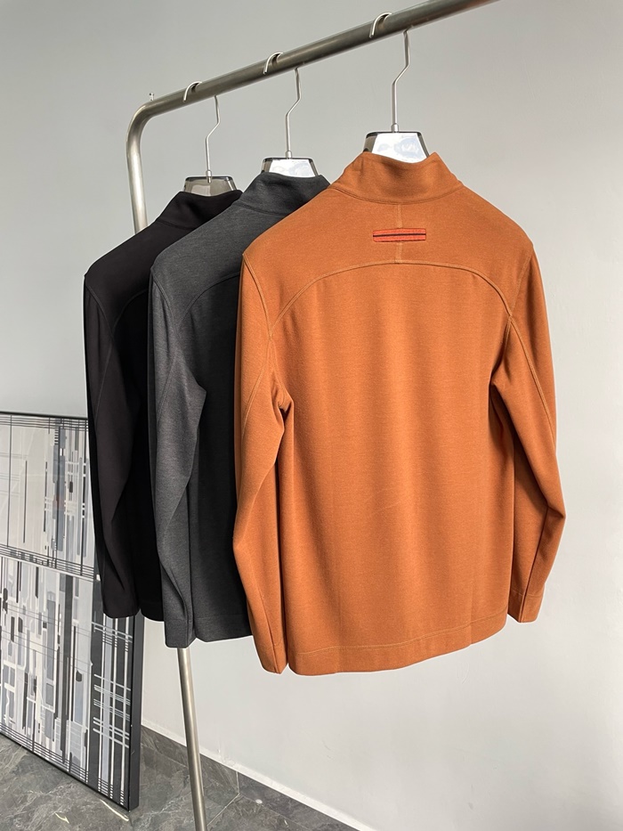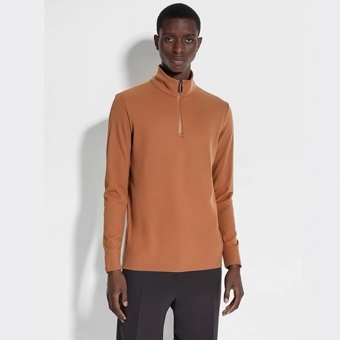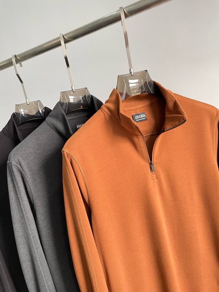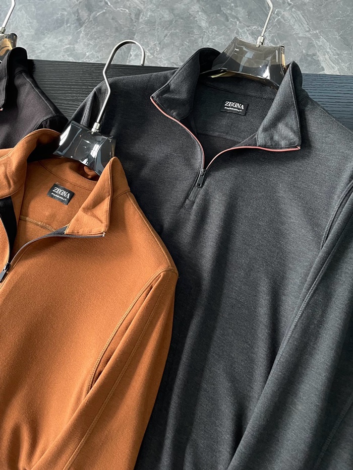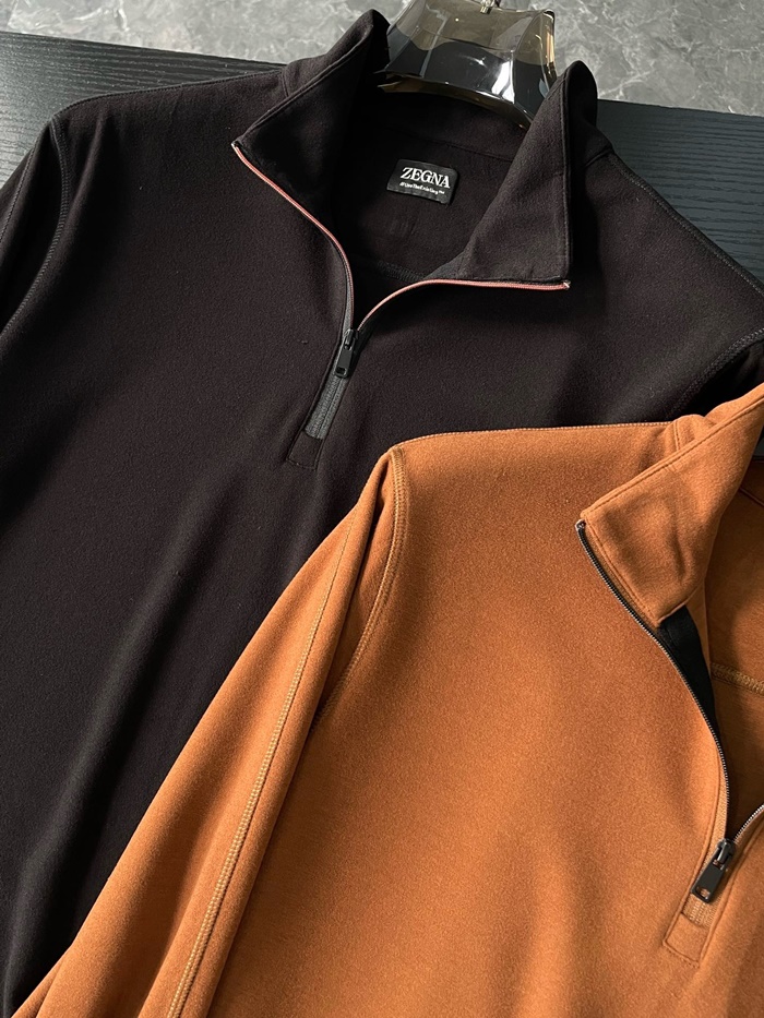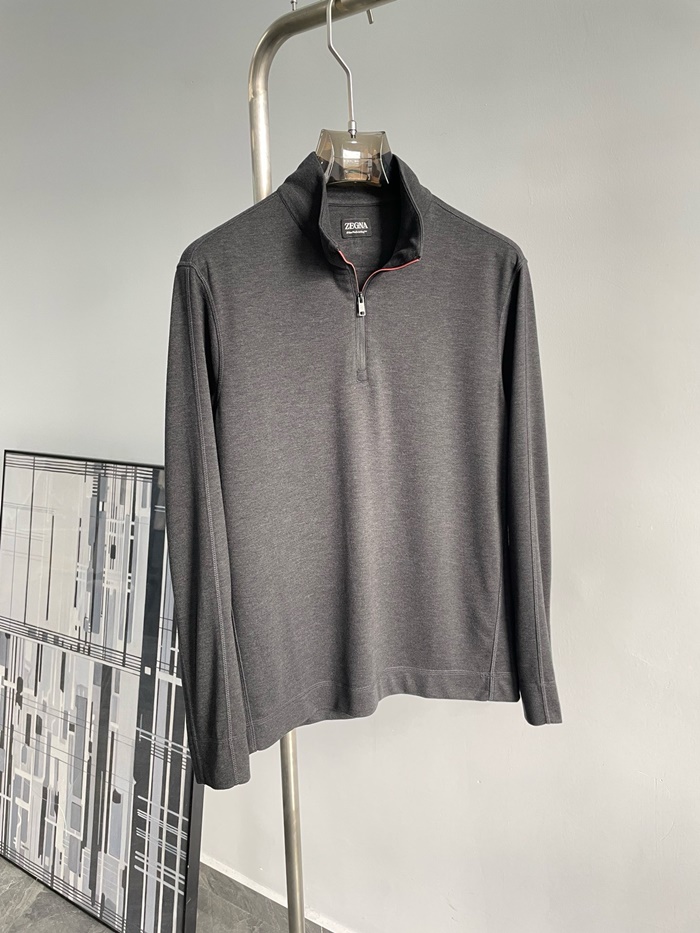 エルメネジルドゼニアメンズジップアップ長袖Tシャツ-c2488