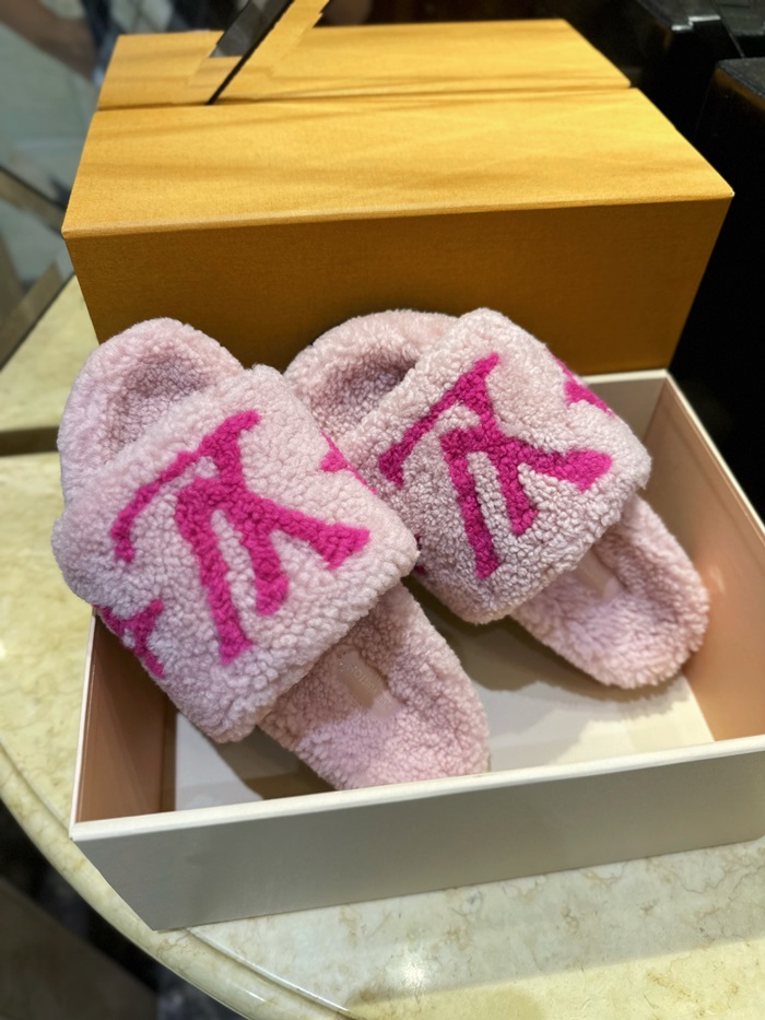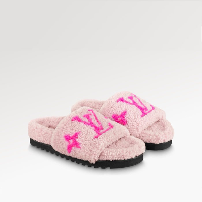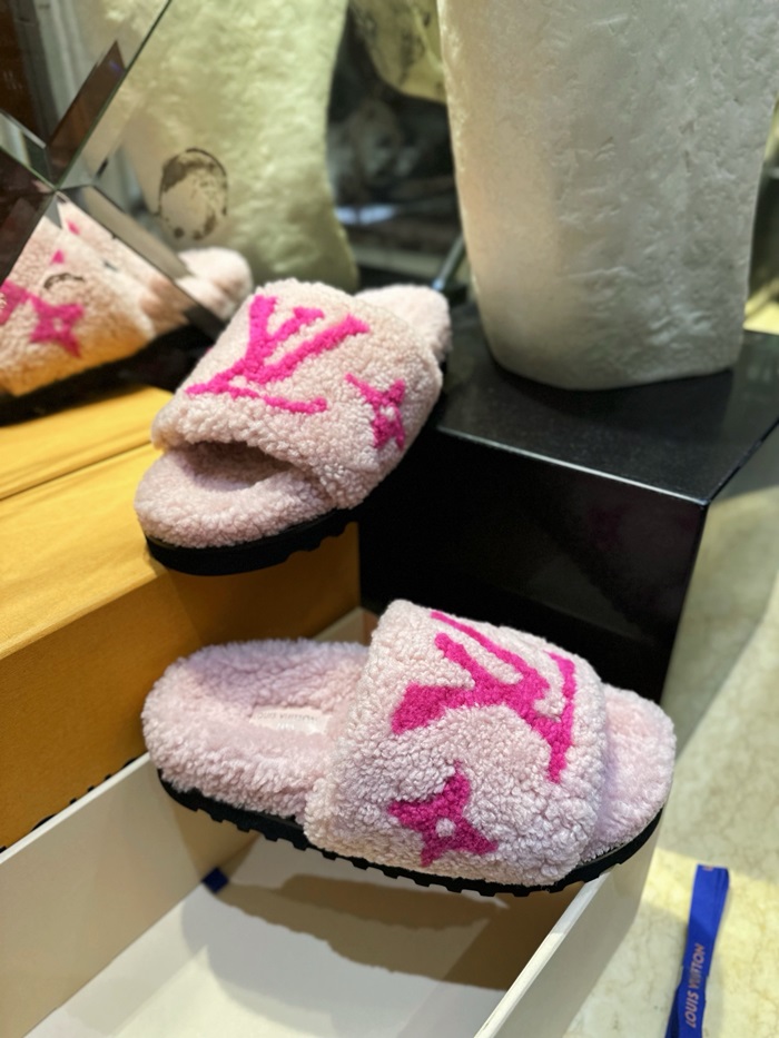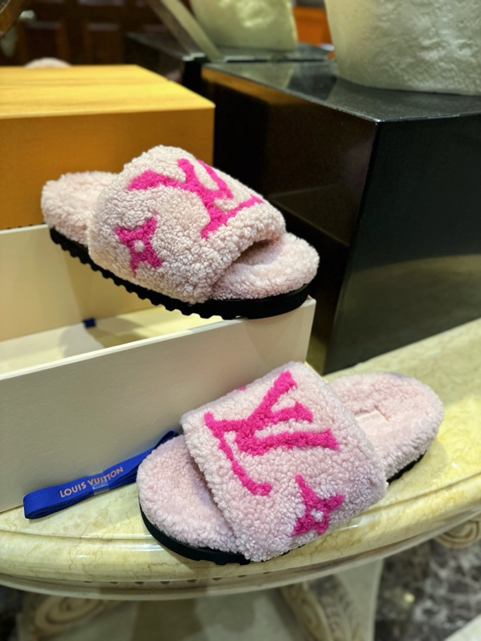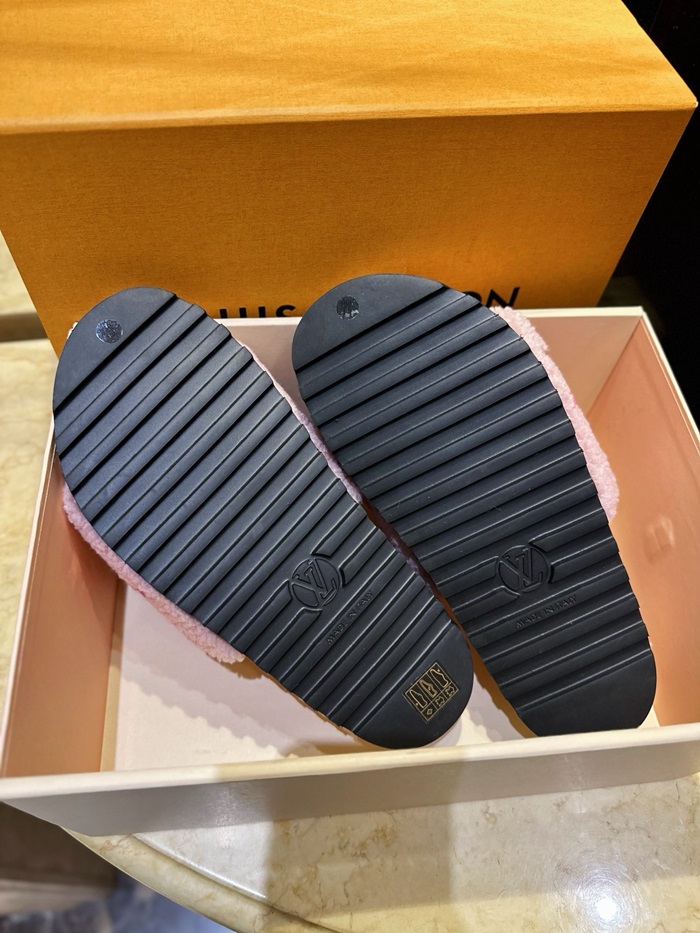 ルイヴィトンレディーススプリングダイアフラットミュールシアリングスリッパs1678