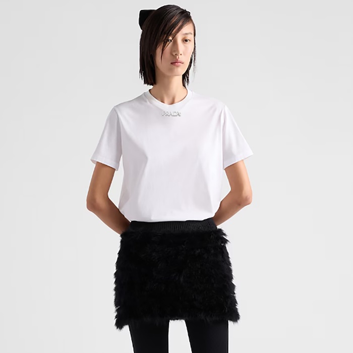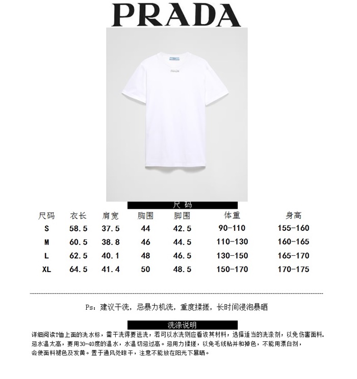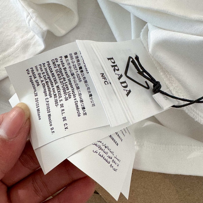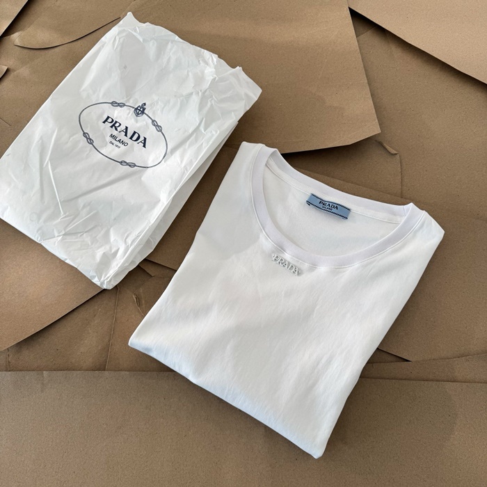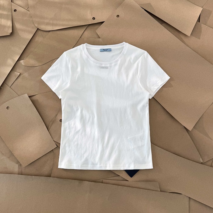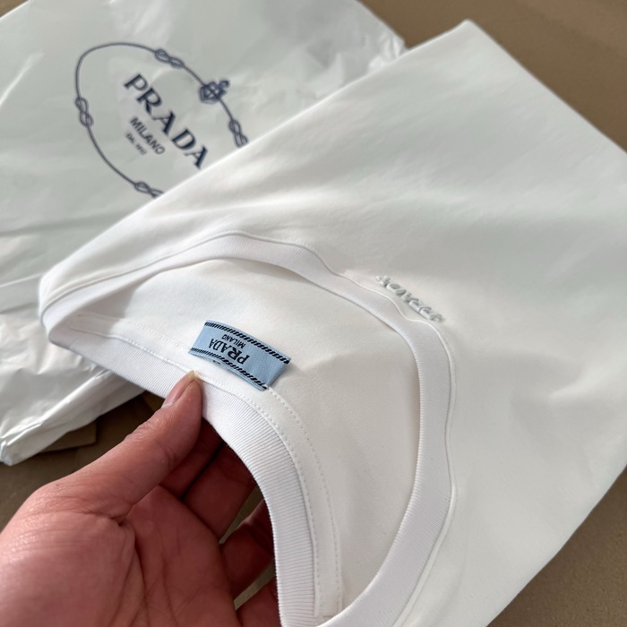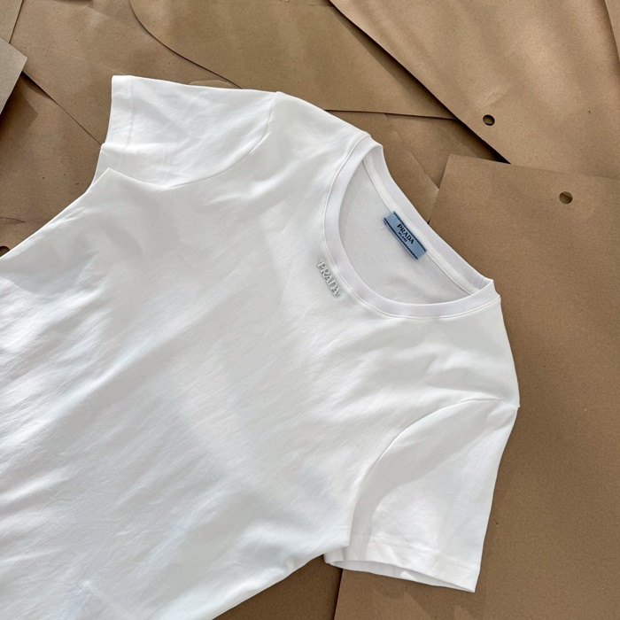 プラダレディースホワイト半袖Tシャツc5113