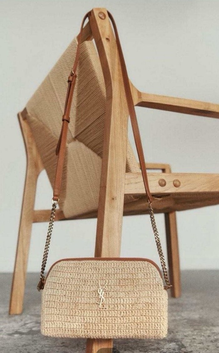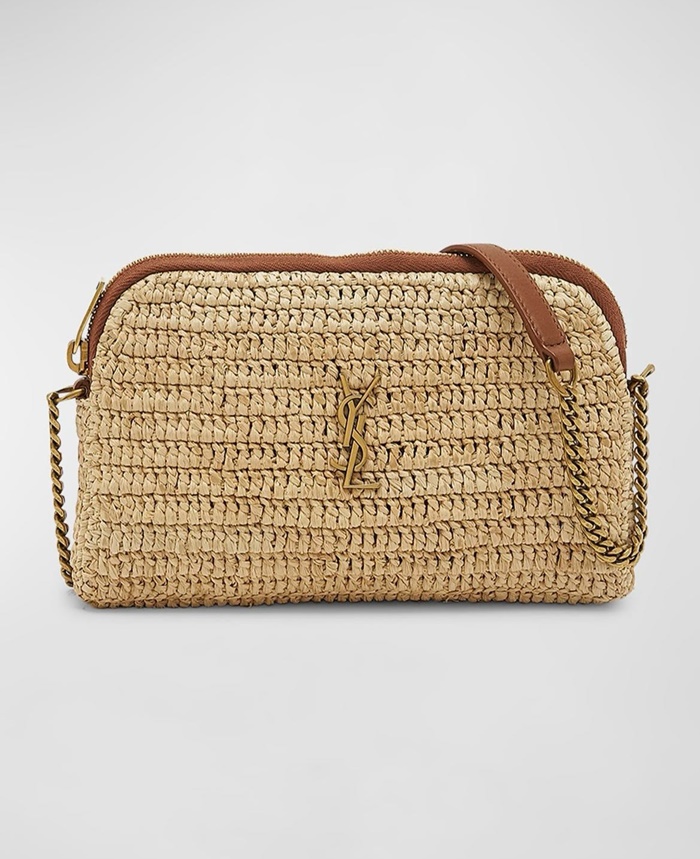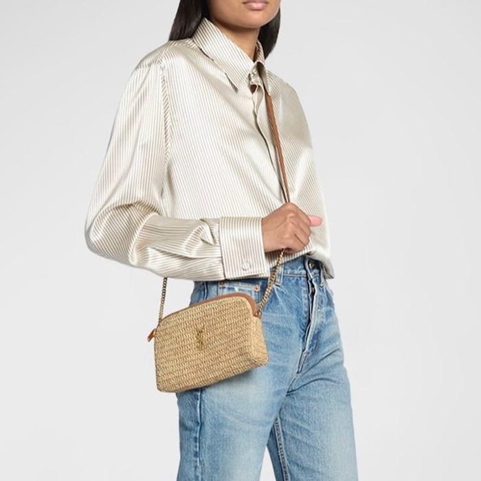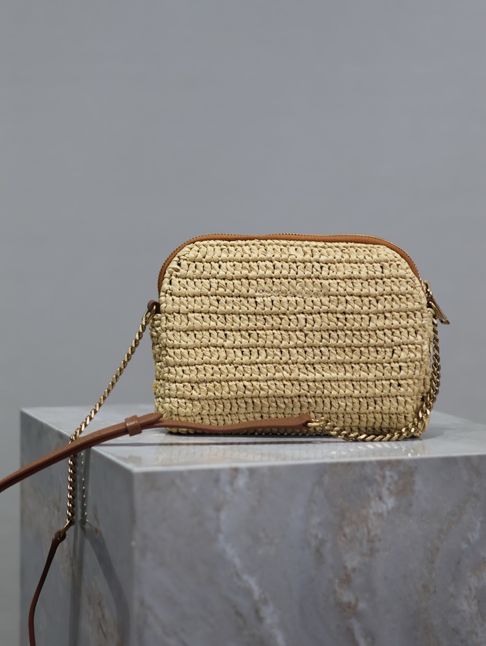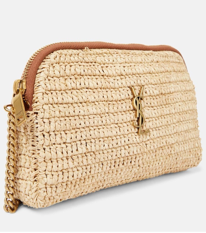 サンローランレディースラフィアおよびベジタブル・タンドガビージッパーパウチb5507