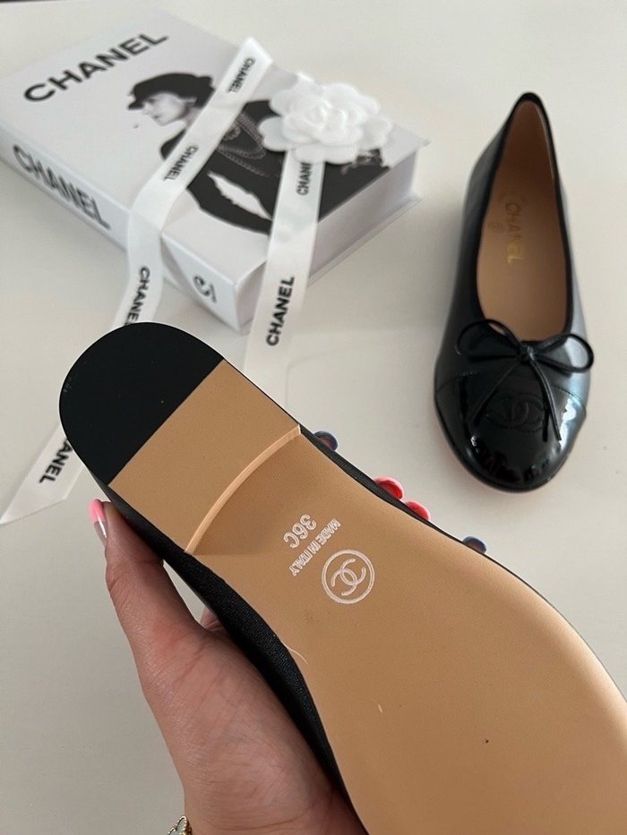 シャネルレディースラムスキンバレリーナフラットシューズs876