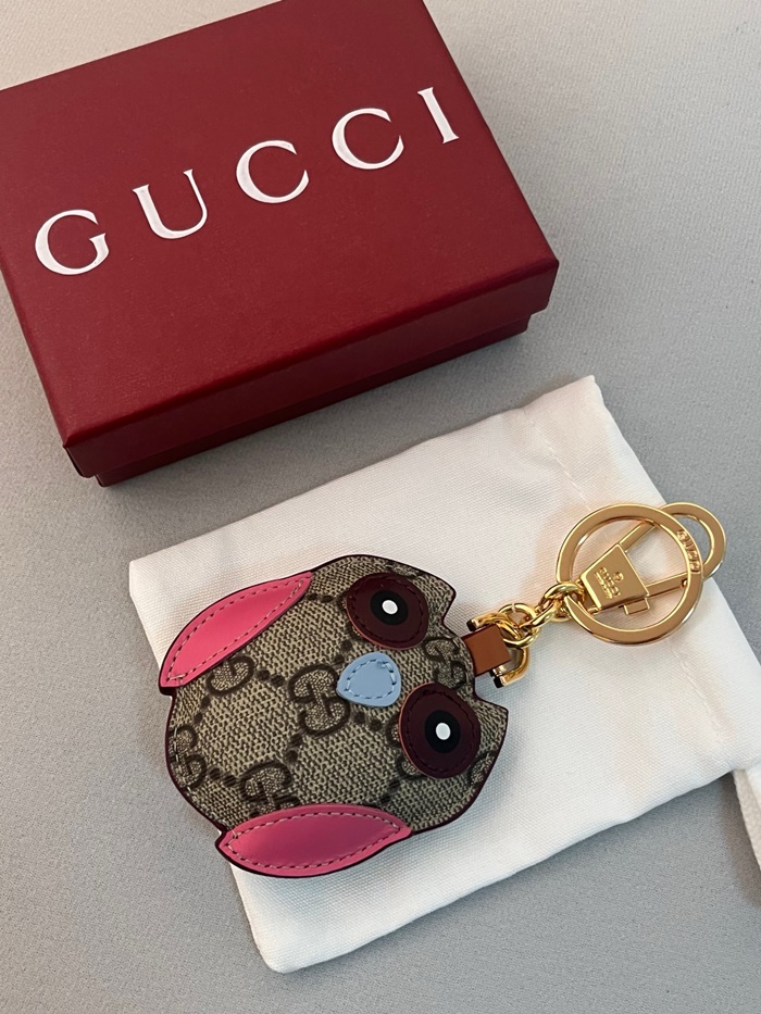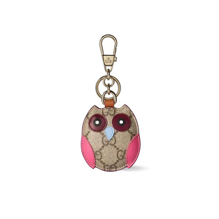 グッチユニセックスエンブレムキャンバスフクロウバッグチャームキーチェーンc5770