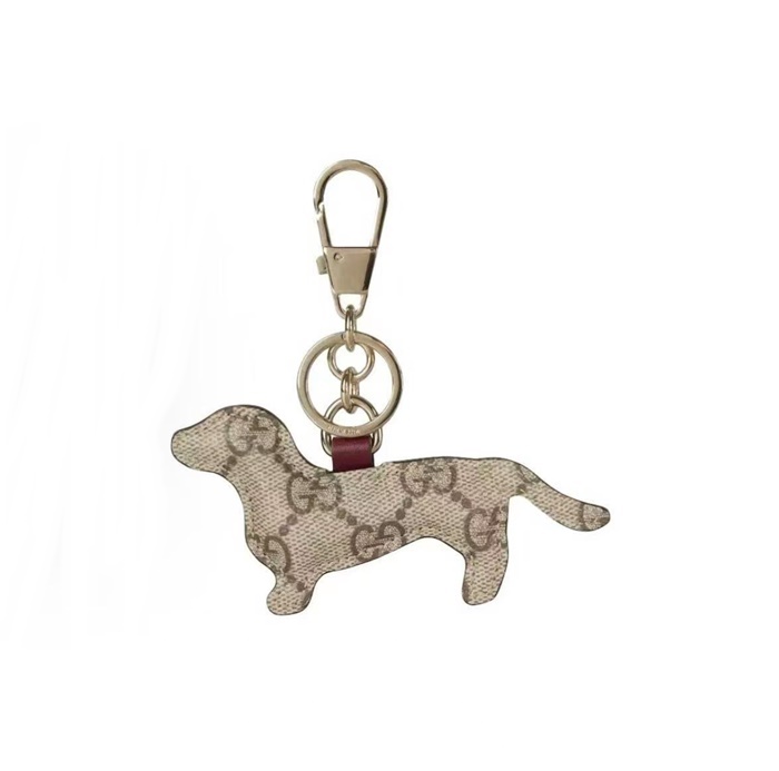 グッチユニセックスエンブレムキャンバス子犬バッグチャームキーチェーンc5771