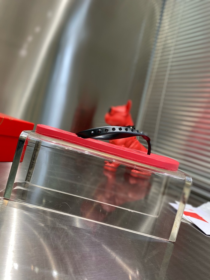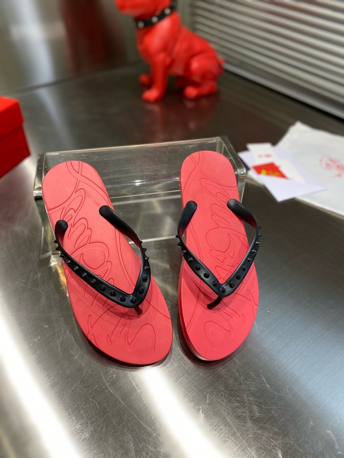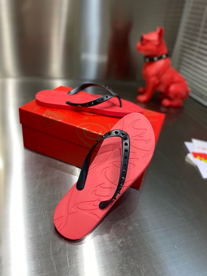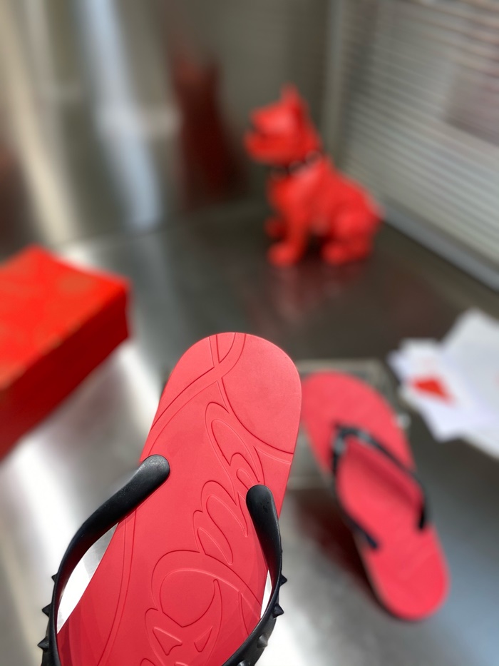 クリスチャンルブタンメンズスパイクスフリップフロップスライドs5866