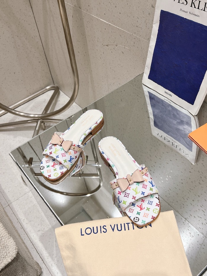 ルイヴィトンレディースムラカミリボンフラットミュールスリッパサンダルs5909