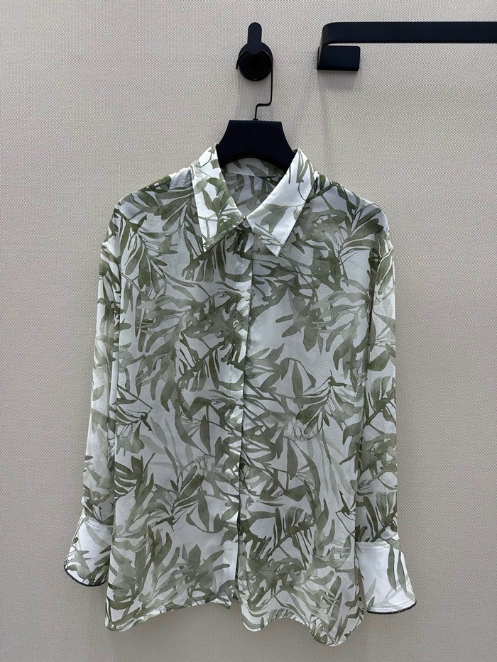 ブルネロクチネリレディースシルクハーバリウムプリントポンジーシャツc6910