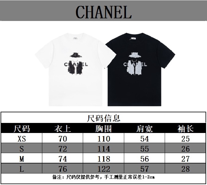 シャネルユニセックスラウンド半袖Tシャツc7132