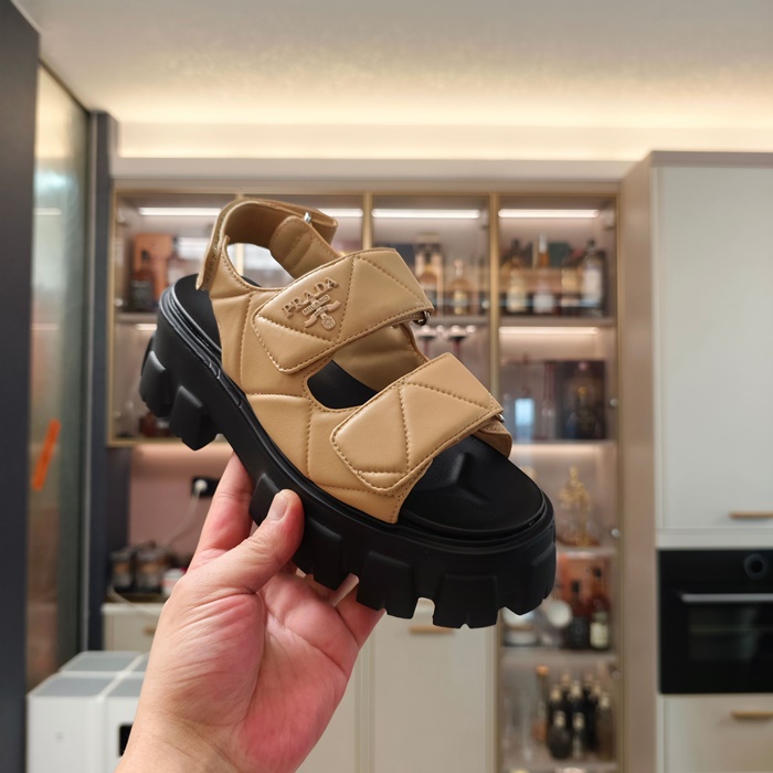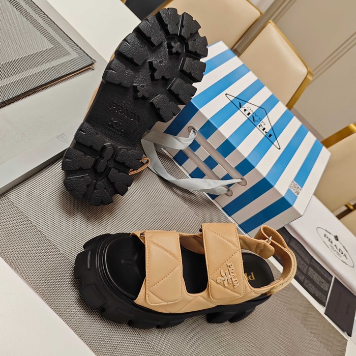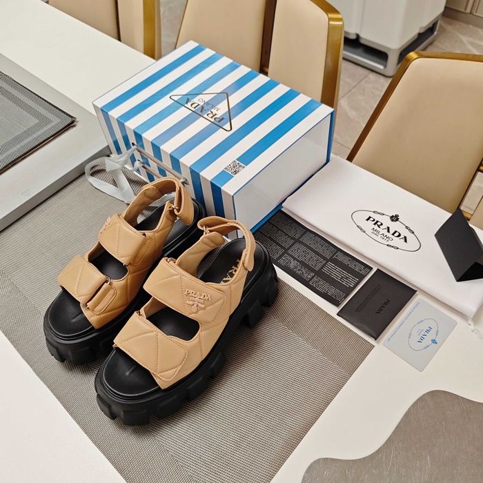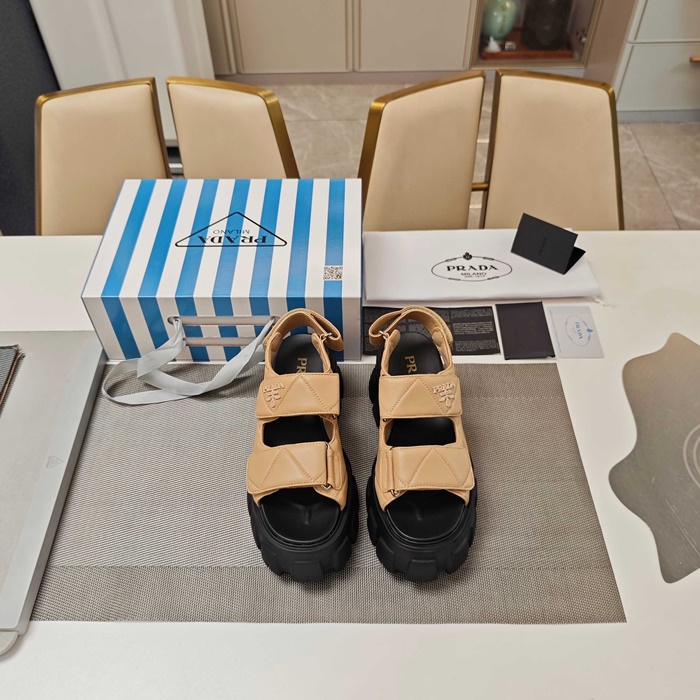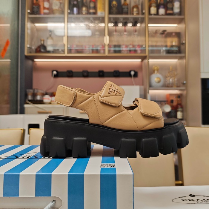 プラダレディースモノリスナッパレザーサンダルs6257