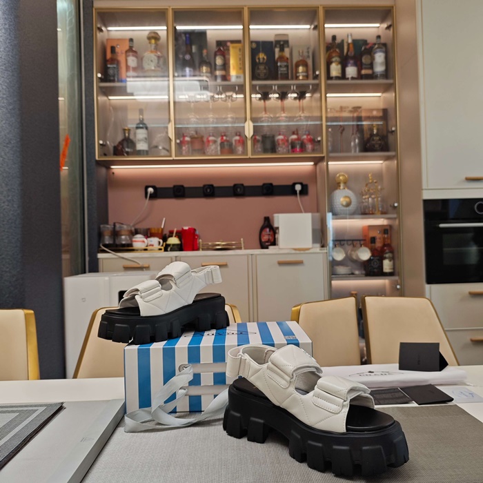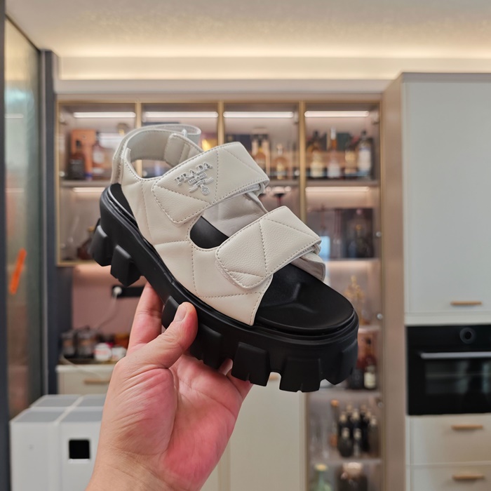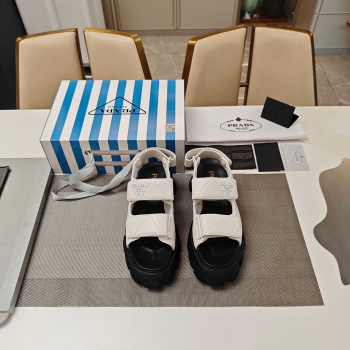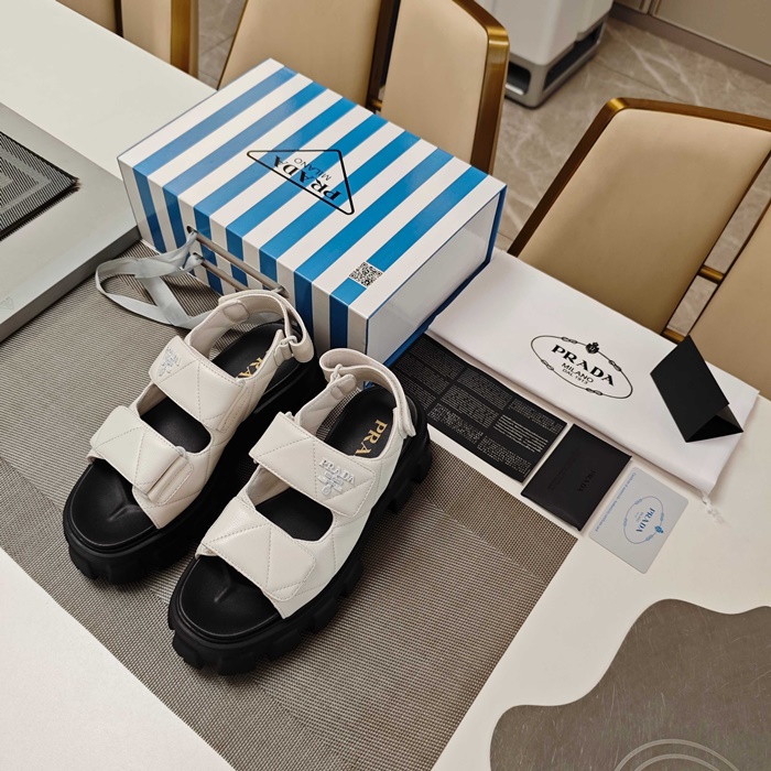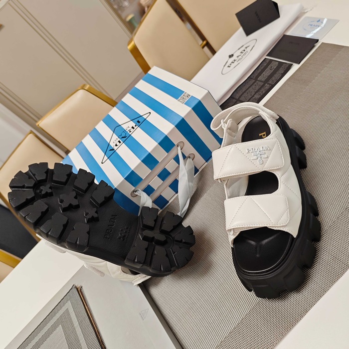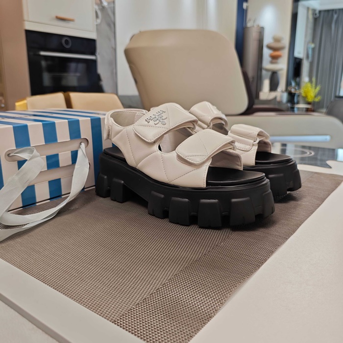 プラダレディースモノリスナッパレザーサンダルs6258
