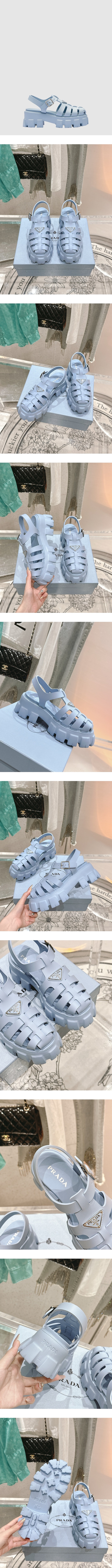 プラダレディースモノリスクロシェケージーサンダルs6749
