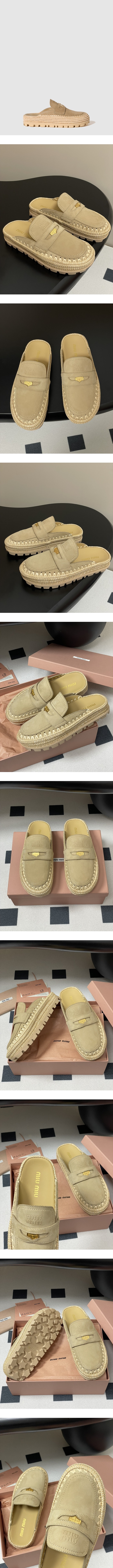 ミュウミュウレディーススエードラフィアプラットフォームミュールs7003
