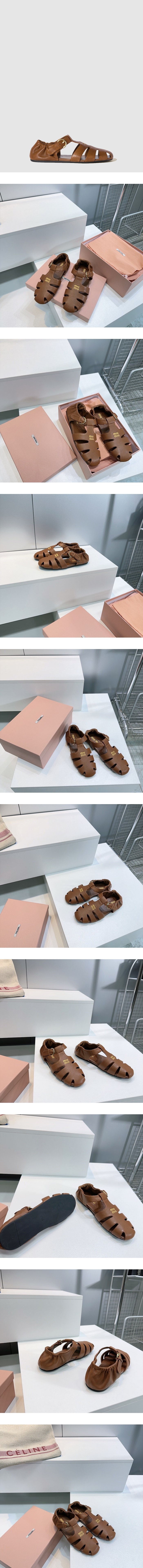 ミュウミュウレディースリュシュナッパレザーフィッシャーマンサンダルs8073