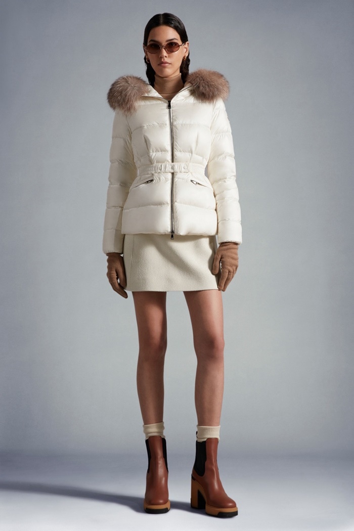 モンクレールレディースボエドフードシアリングトリミングショートダウンジャケットc9021