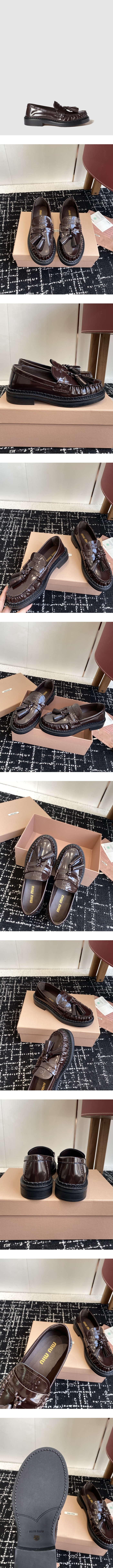 ミュウミュウレディースポリッシュドレザーローファーs8753