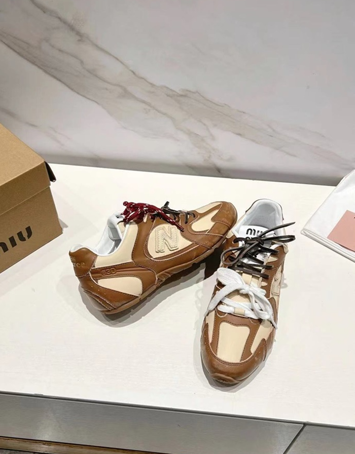 ミュウミュウユニセックスレザースニーカーs8756