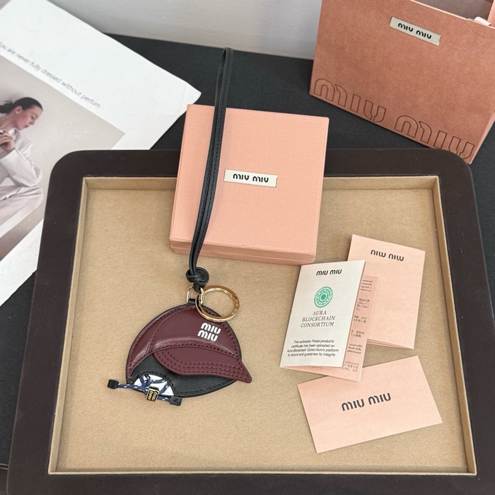ミュウミュウユニセックスレザーキーホルダートリックc6332