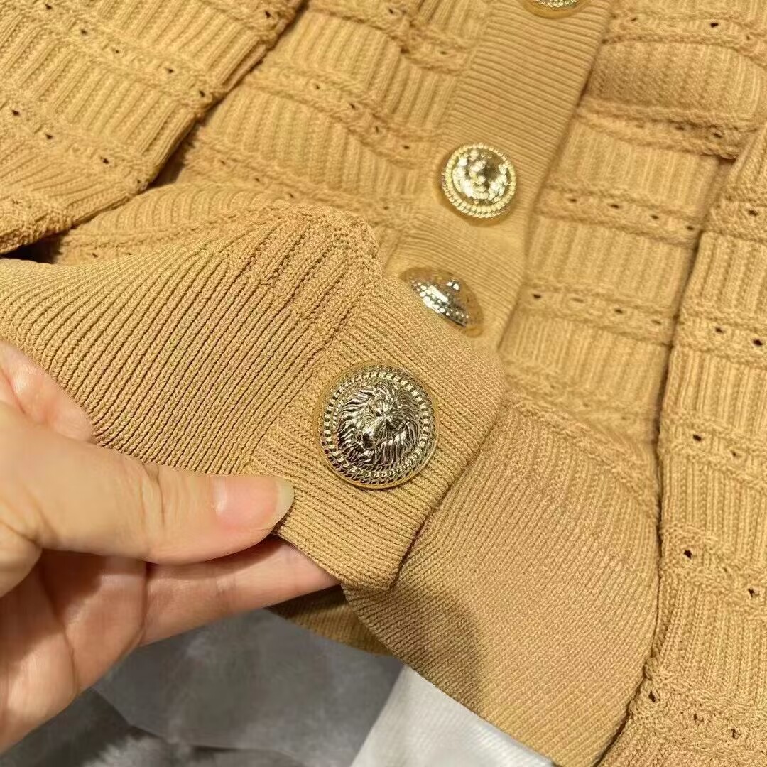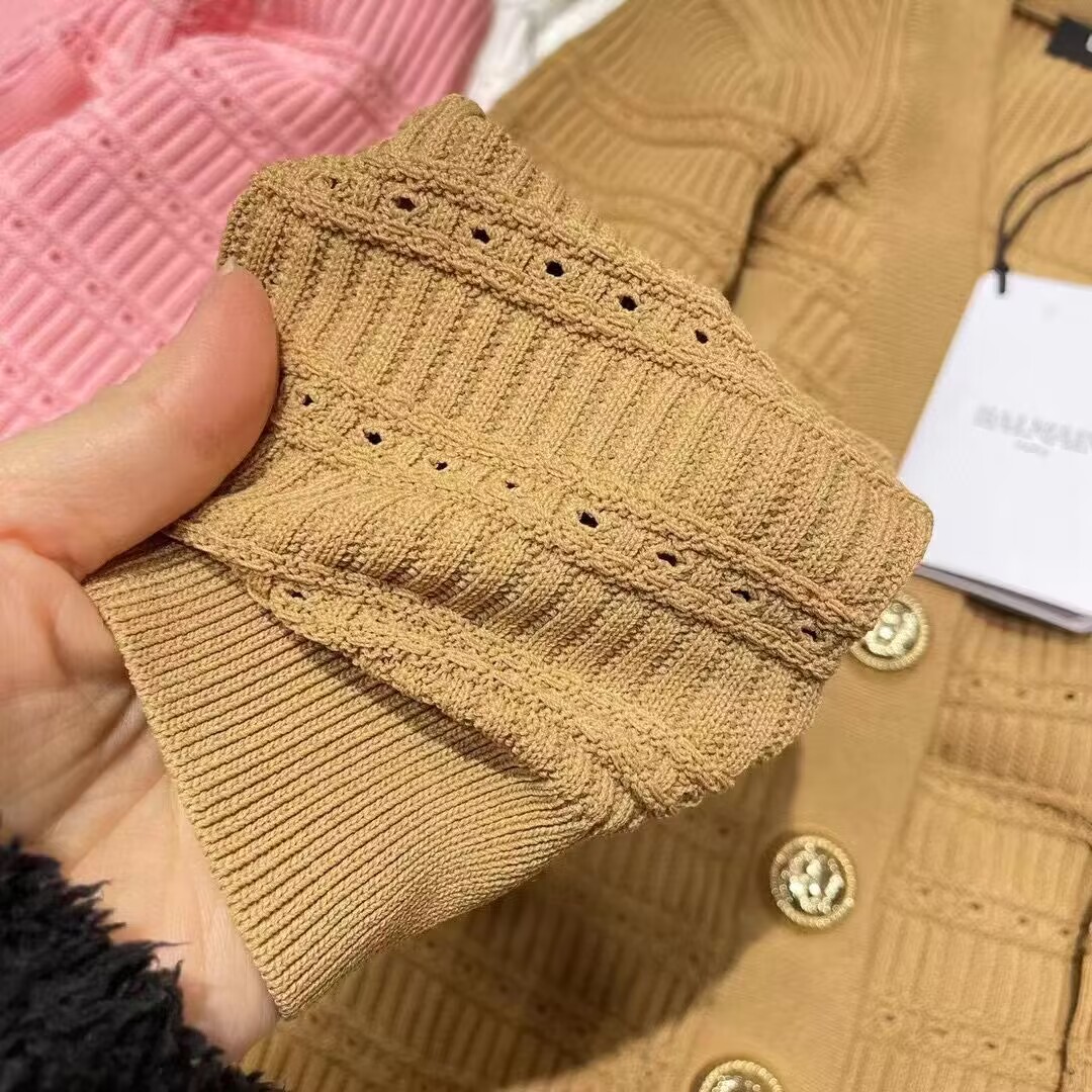 バルマンレディースハンドクラフトスレッドカーディガンm0164.ブラック/ホワイト/キャメル)