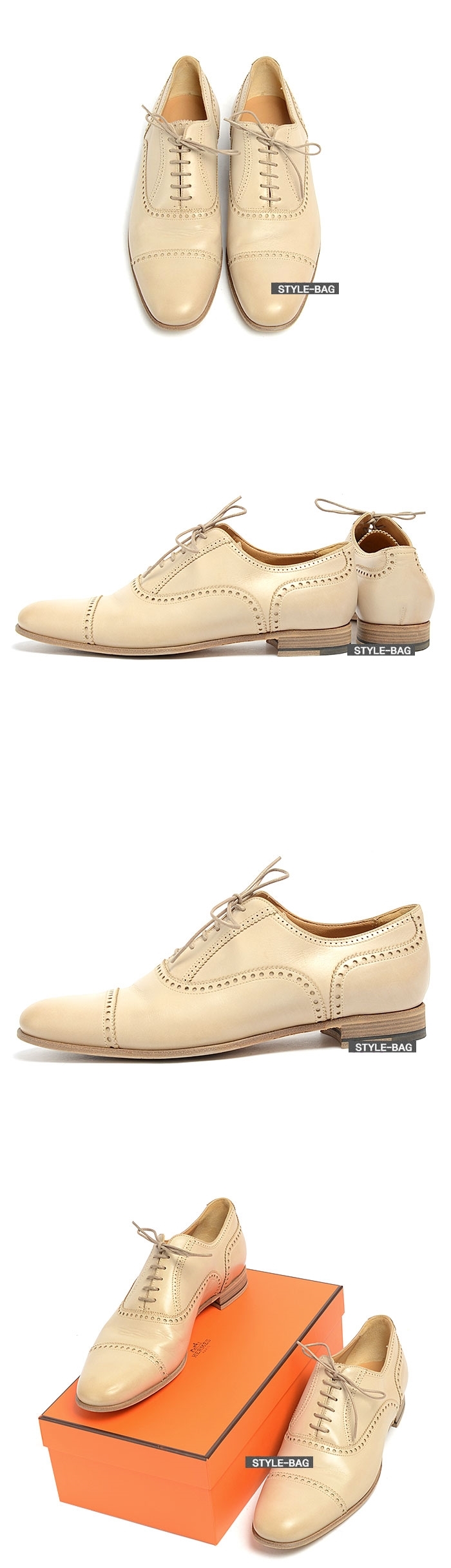 エルメスレディースビジネスクラシックレザーオックスフォードシューズr0225アイボリー
