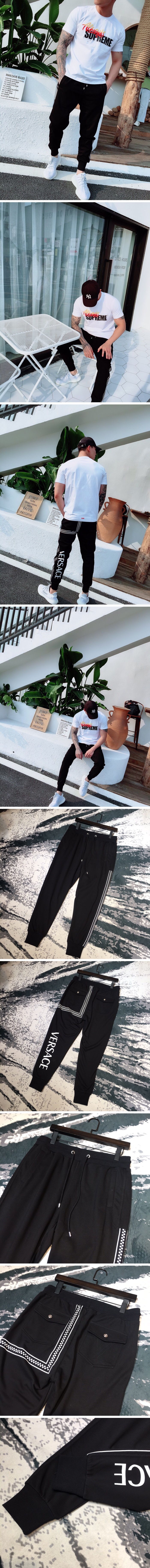 ヴェルサーチェメンズカジュアルコットントレーニングパンツr0198ブラック