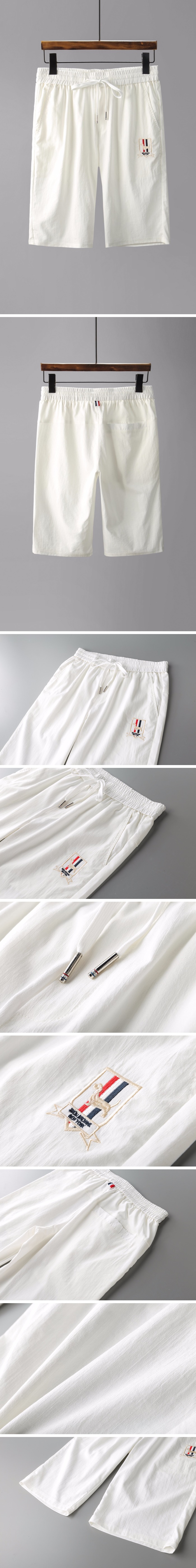 トムブラウンメンズカジュアル刺繍トレーニングショートパンツo0049ホワイト