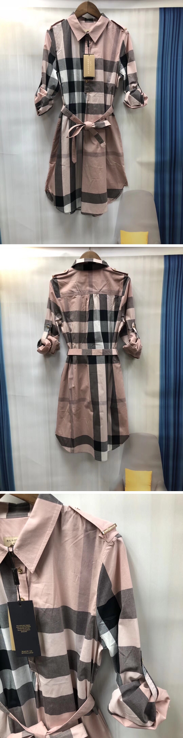 バーバリーレディースクラシックモダンチェックシャツr0702.ベージュ