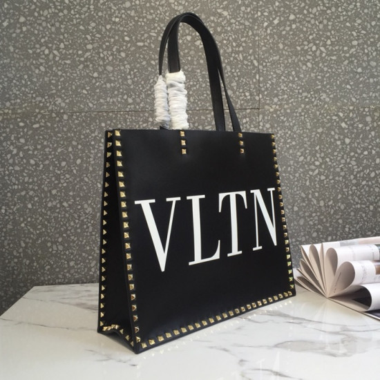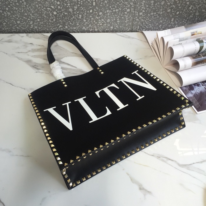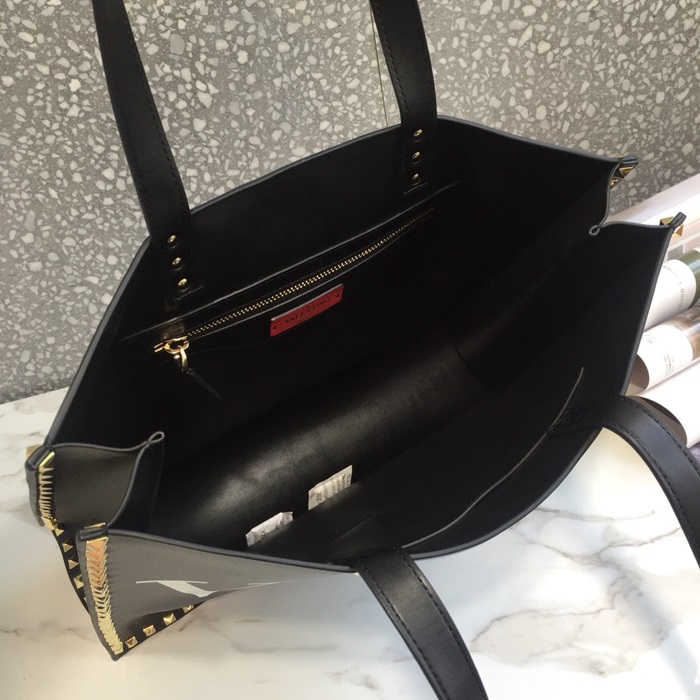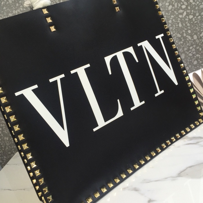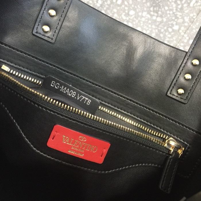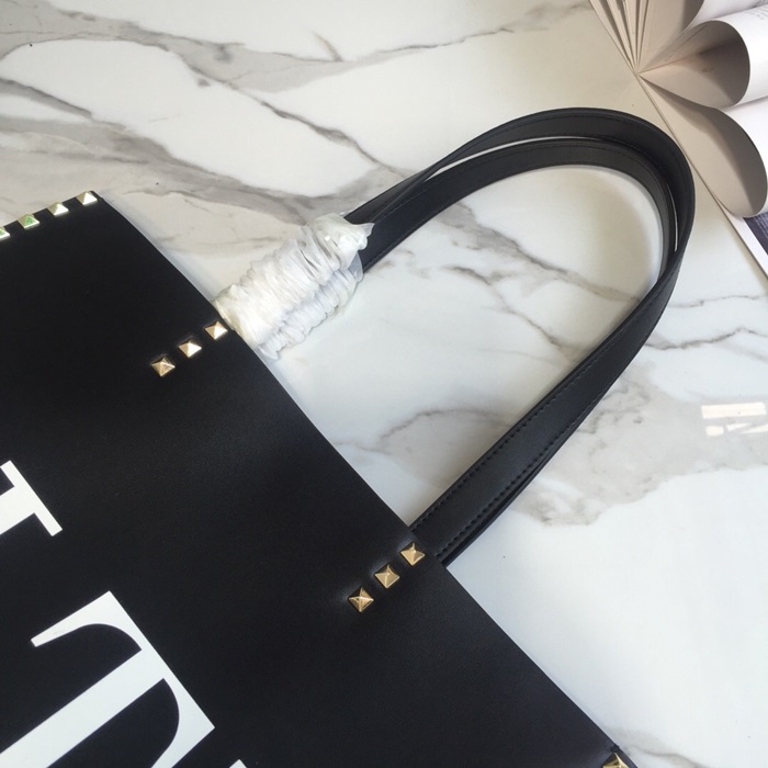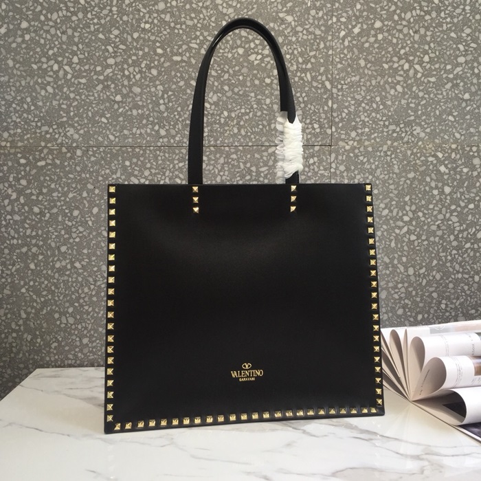 ヴァレンティノレザーロックスタッズトートバッグショッパーバッグ,B0418,ブラック