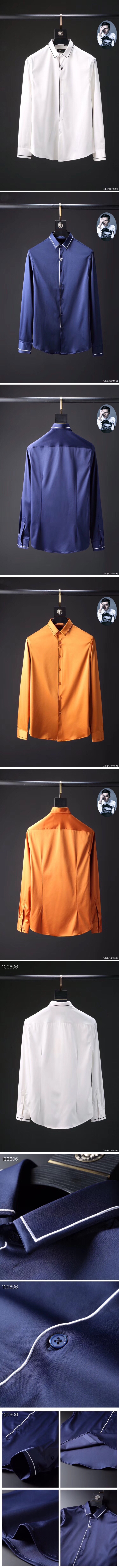 ディオールメンズビジネスモダンシルクシャツo02143(ホワイト/ネイビー/オレンジ)