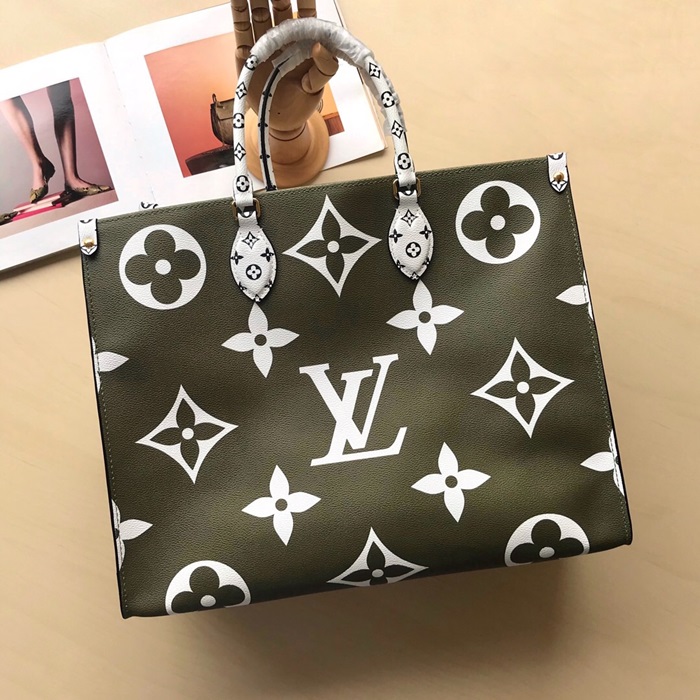ルイヴィトンオンザゴートートバッグショッパーバッグM44570,B1214,グリーン+ホワイト