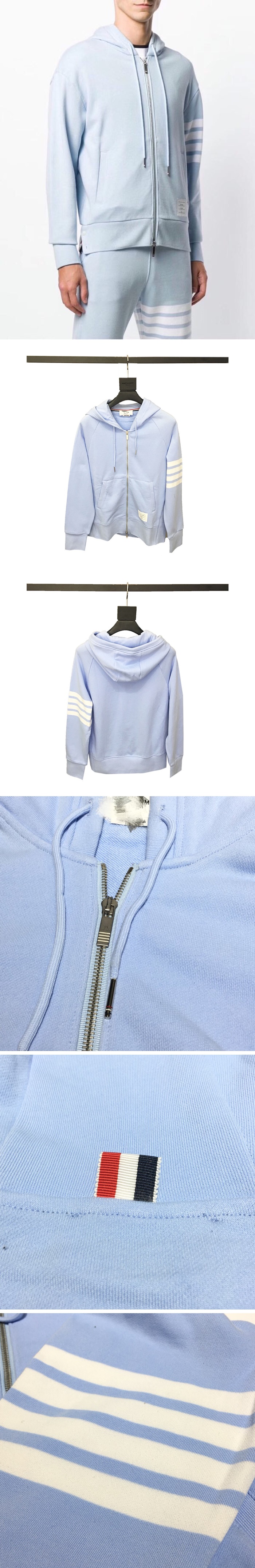 -トムブラウンメンズカジュアルジップアップフードジャケットo0146スカイブルー