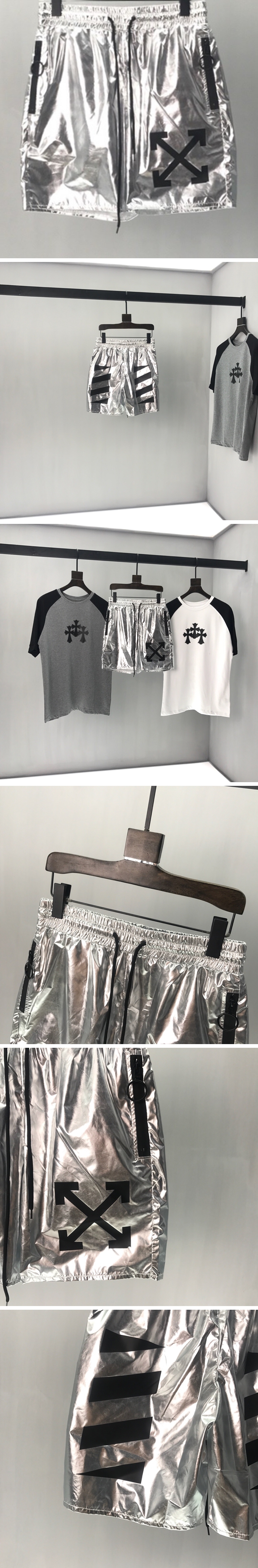 オフホワイトメンズカジュアルトレーニングショートパンツf0096.シルバー
