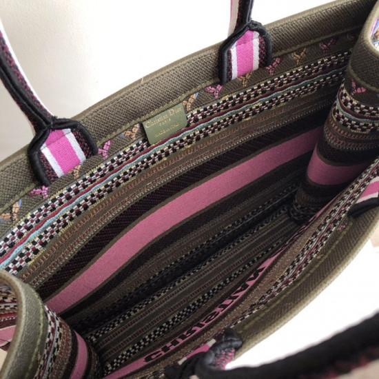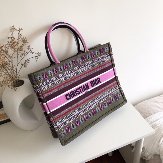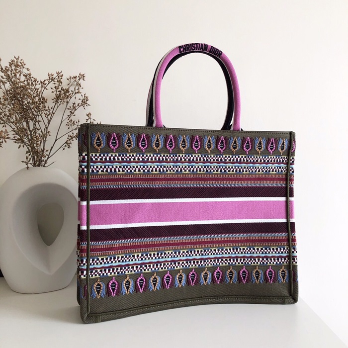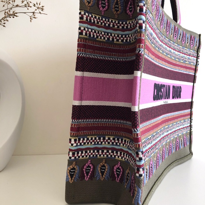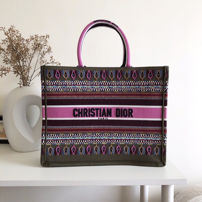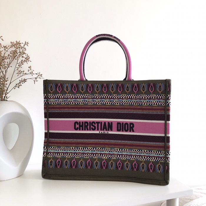,ディオールレディースキャンバスブックトートバッグショッパーバッグB0287,,ピンク+カーキ