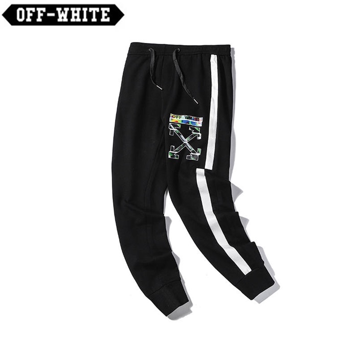 -オフホワイトメンズコットントレーニングパンツA0002.ブラック