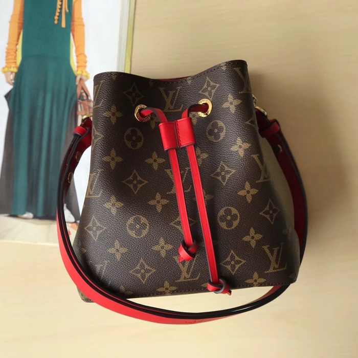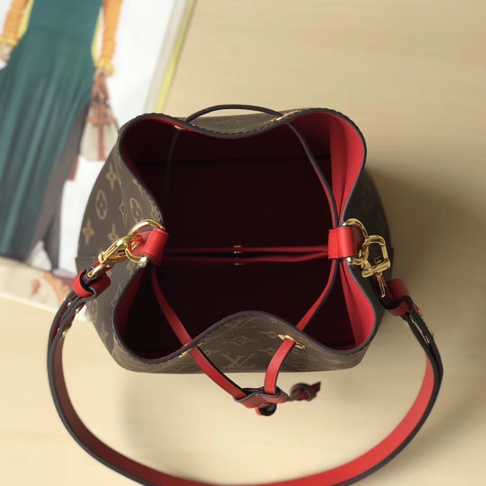 ルイヴィトンネオノエレディースミニバケットバッグ,M52853,B1516,ブラウン+レッド