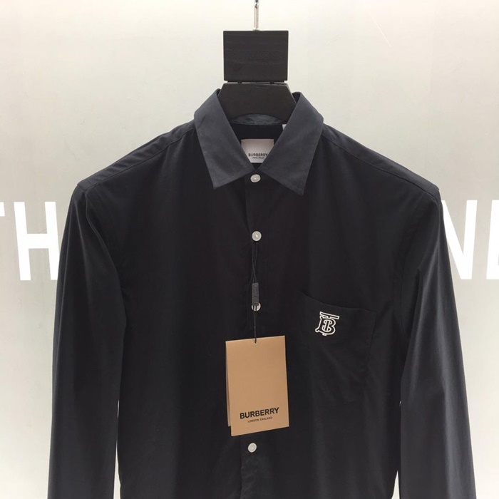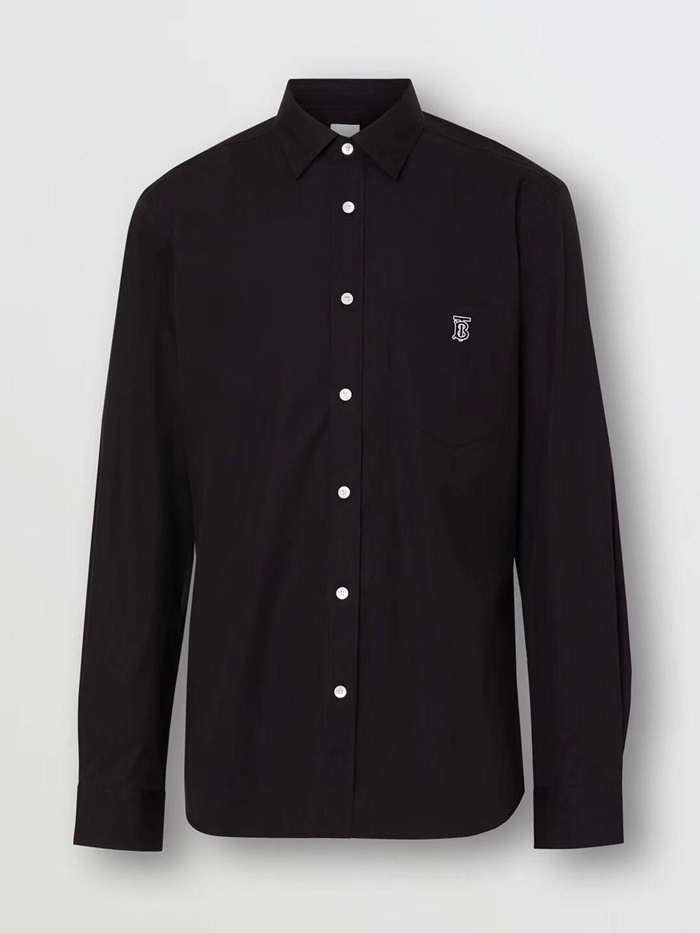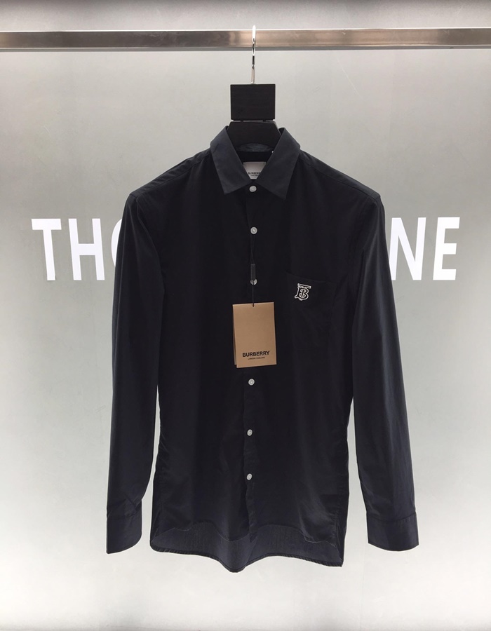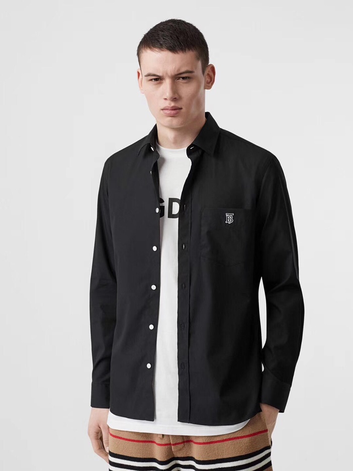 バーバリーメンズホワイトコットンシャツt0052.ブラック
