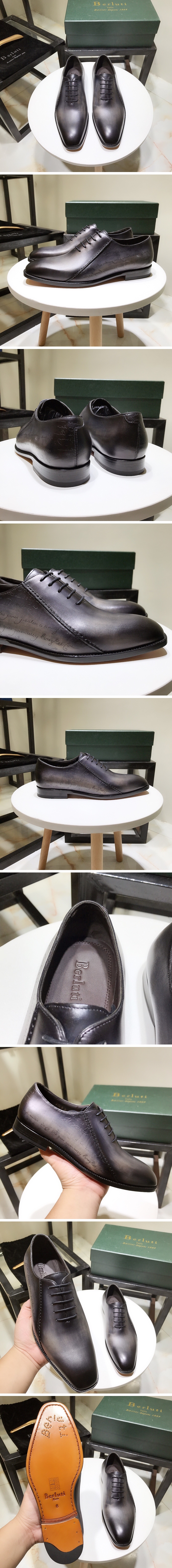 カスタム級ベルルッティメンズレトロビジネスレザーオックスフォードシューズt008ダークグレー