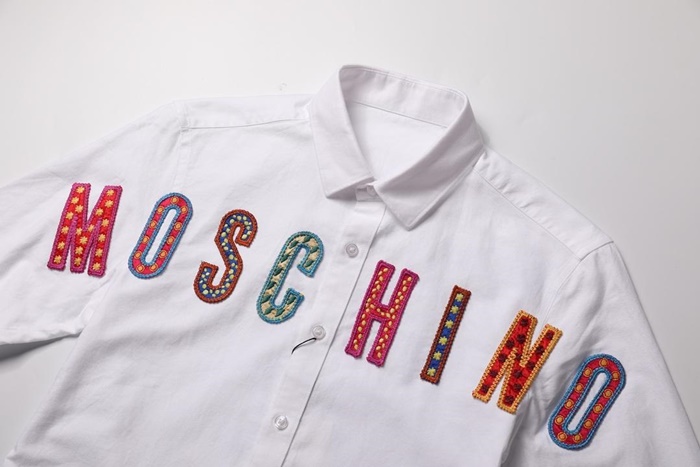 モスキーノメンズコットンシャツh00112(ホワイト,スカイブルー)