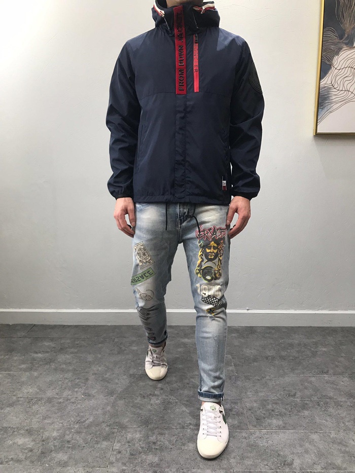 モンクレールメンズカジュアルウィンドブレーカーフードジャケットa0077.ネイビー