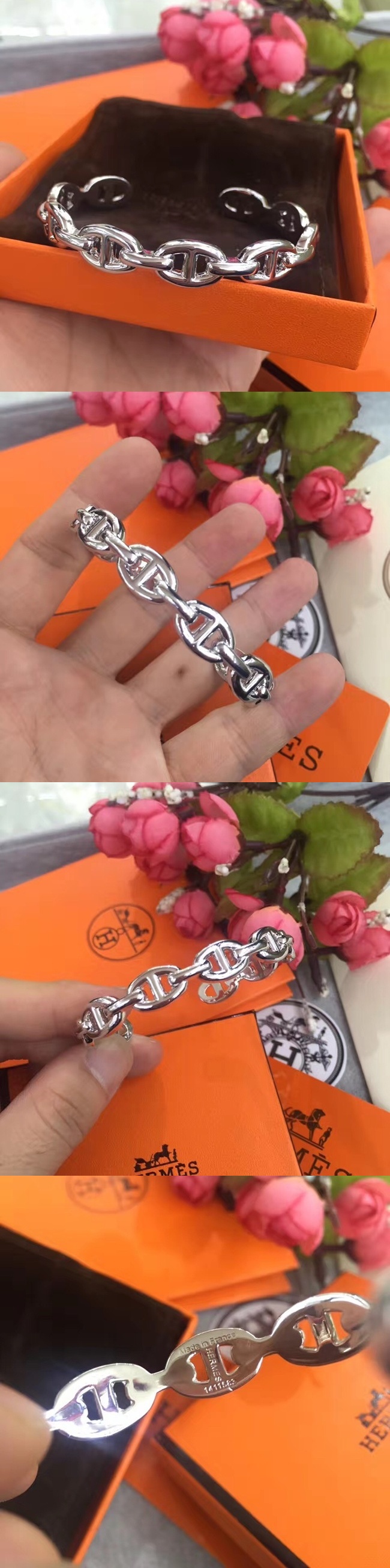 -エルメスレディースブレスレット18メッキホワイトゴールドブレスレットr0001.