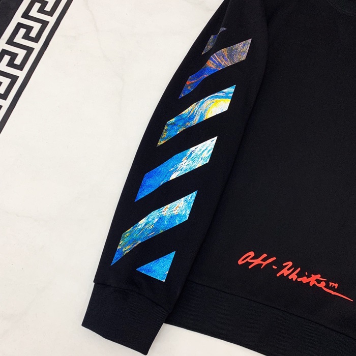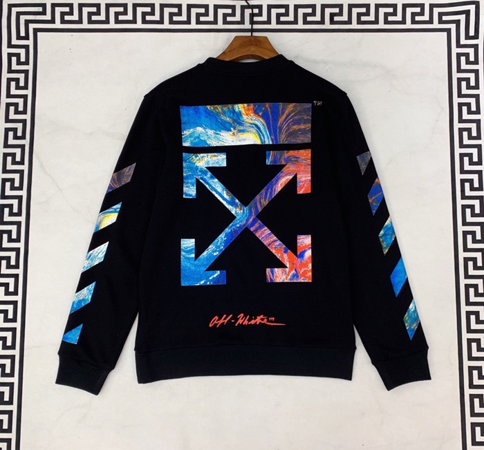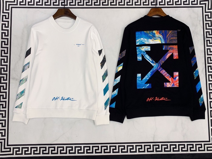 オフホワイトメンズウルフコットンフーディT0018.(-3).ブラック/ホワイト