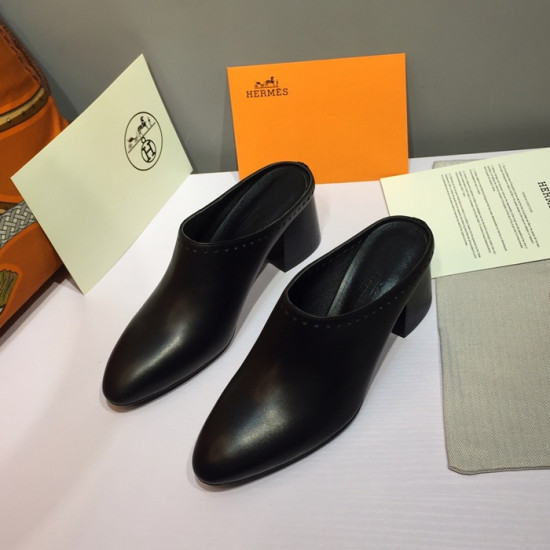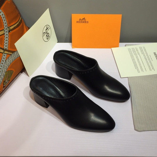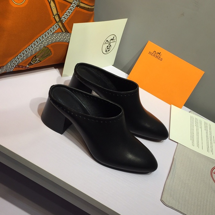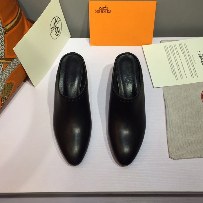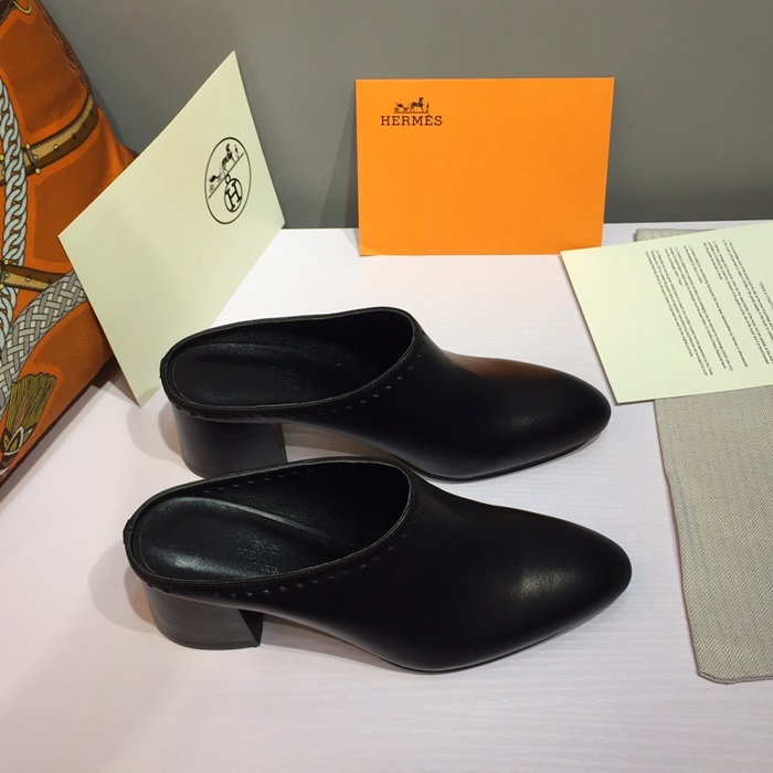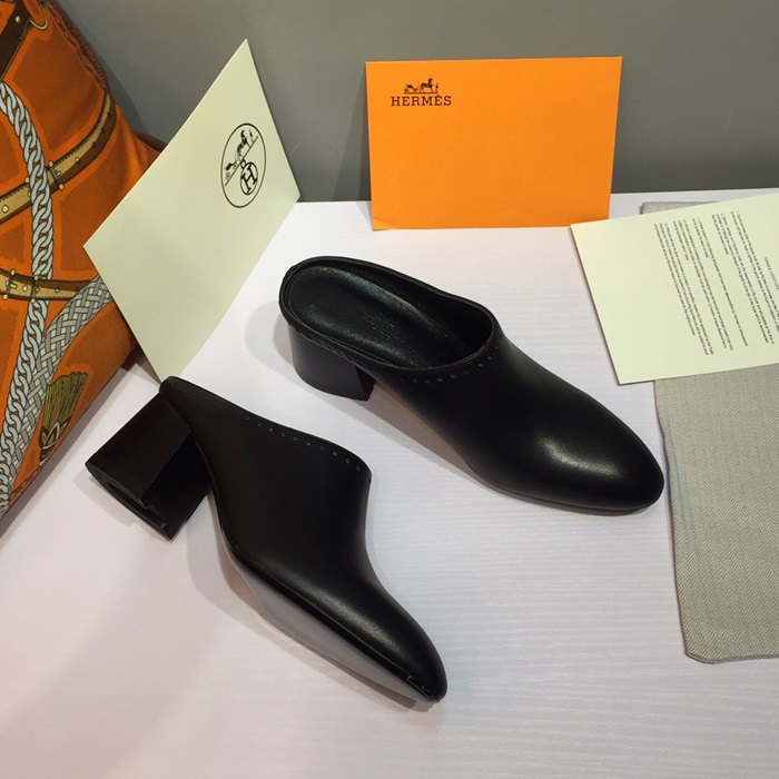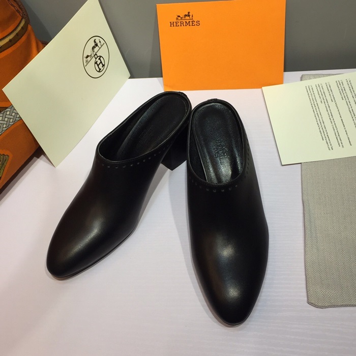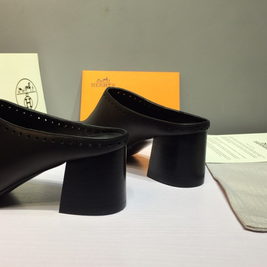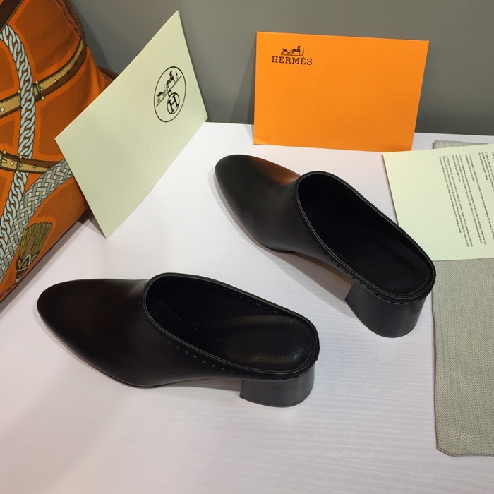 エルメスレディースレザーミドルヒールブローファーS0117,ブラック