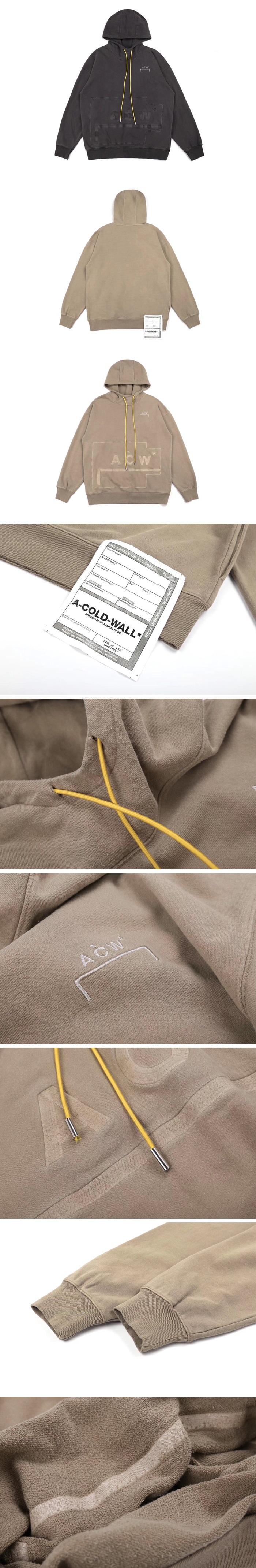 --エイコールドウォールメンズプリントオーバーサイズコットンフーディw0072(ダークグレー/ベージュ)