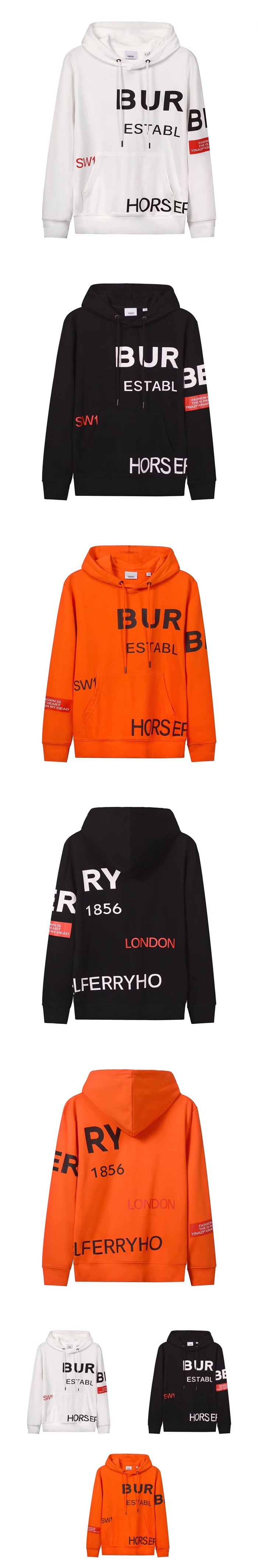 バーバリーメンズコットンフーディr09103(ホワイト/ブラック/オレンジ)