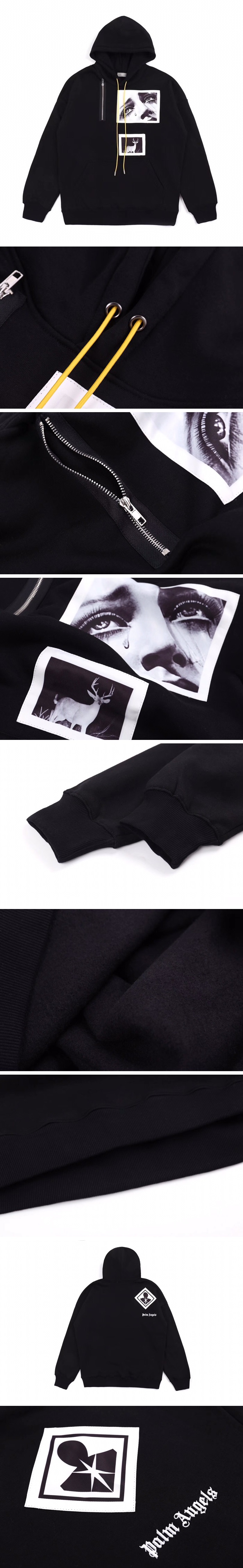 オフホワイトメンズコットンフーディf0120..ブラック