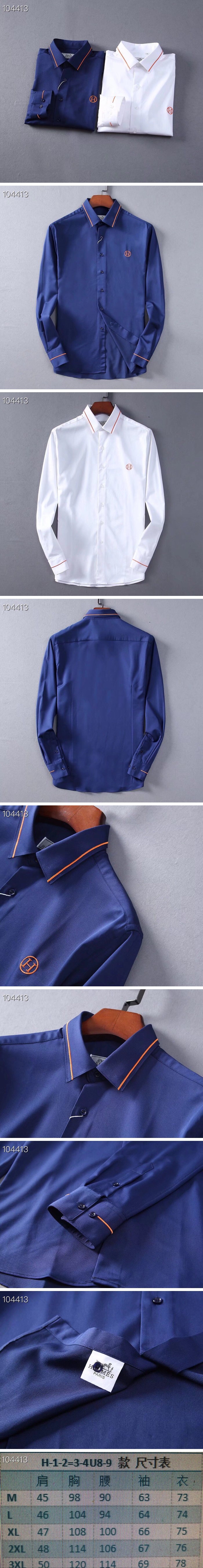 エルメスメンズクラシックコットンシャツr0302ブルー