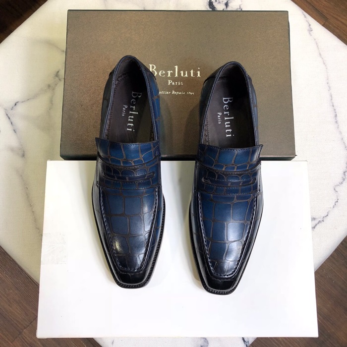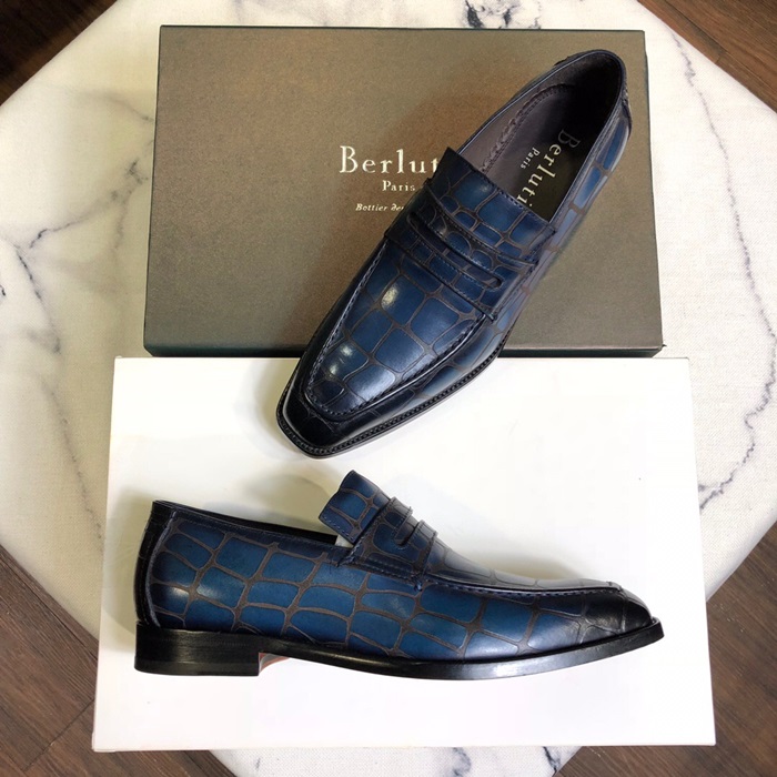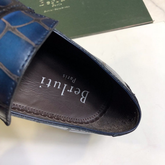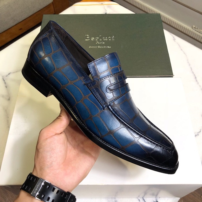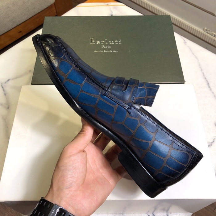 ベルルッティメンズレザーオックスフォードシューズS0026ブルー